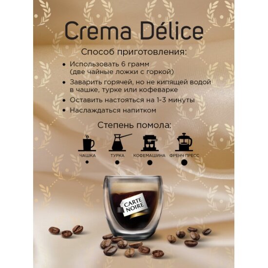 Кофе жареный в зернах Carte Noire crema delice пакет 230 г 2 упаковки
