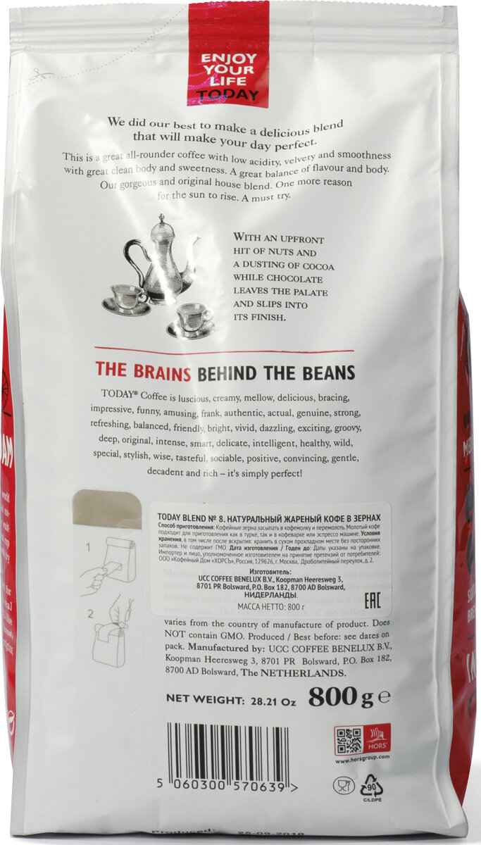 Кофе в зернах Today Blend №8, средняя обжарка, 800 г