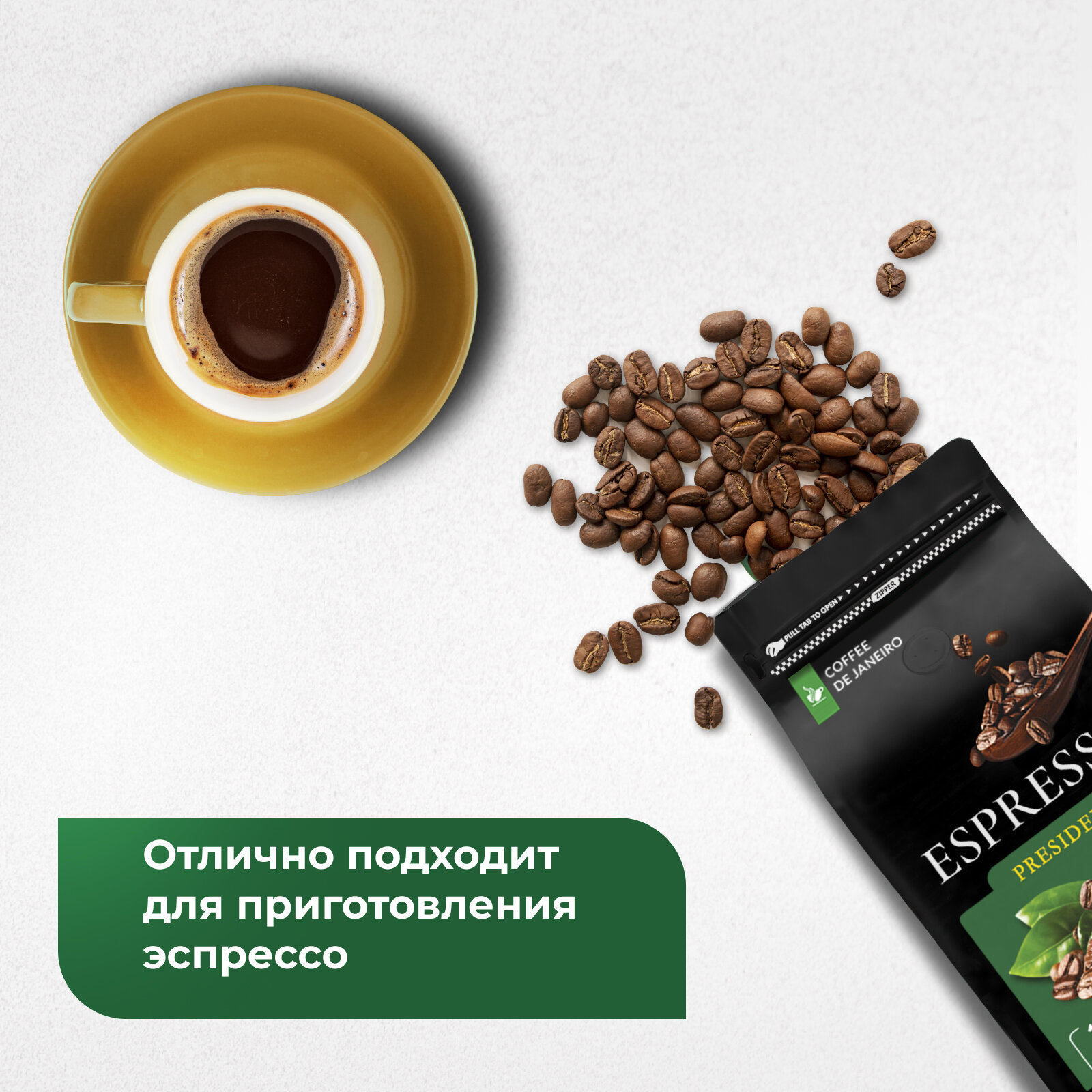 | Состав | DE JANEIRO ESPRESSO PRESIDENT, кофе в зернах, 100% Арабика |