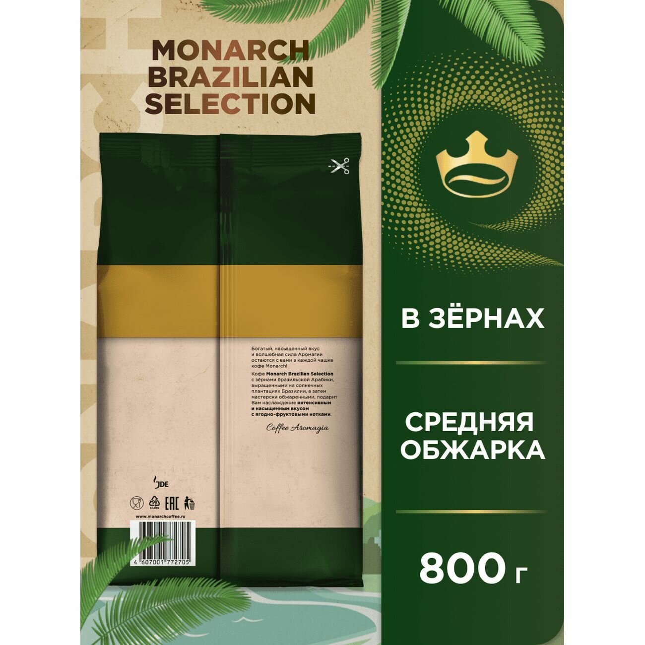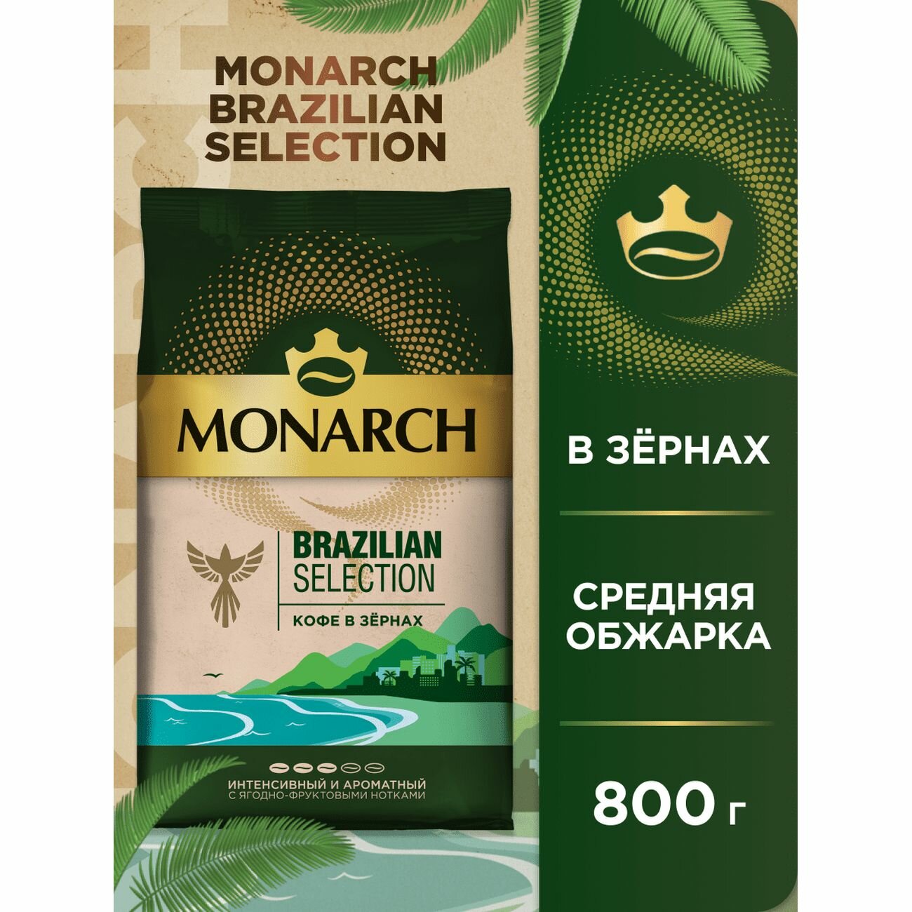 Кофе в зернах Monarch Brazilian Selection, интенсивный и ароматный с ягодно-фруктовыми нотками, 800 г интересное: