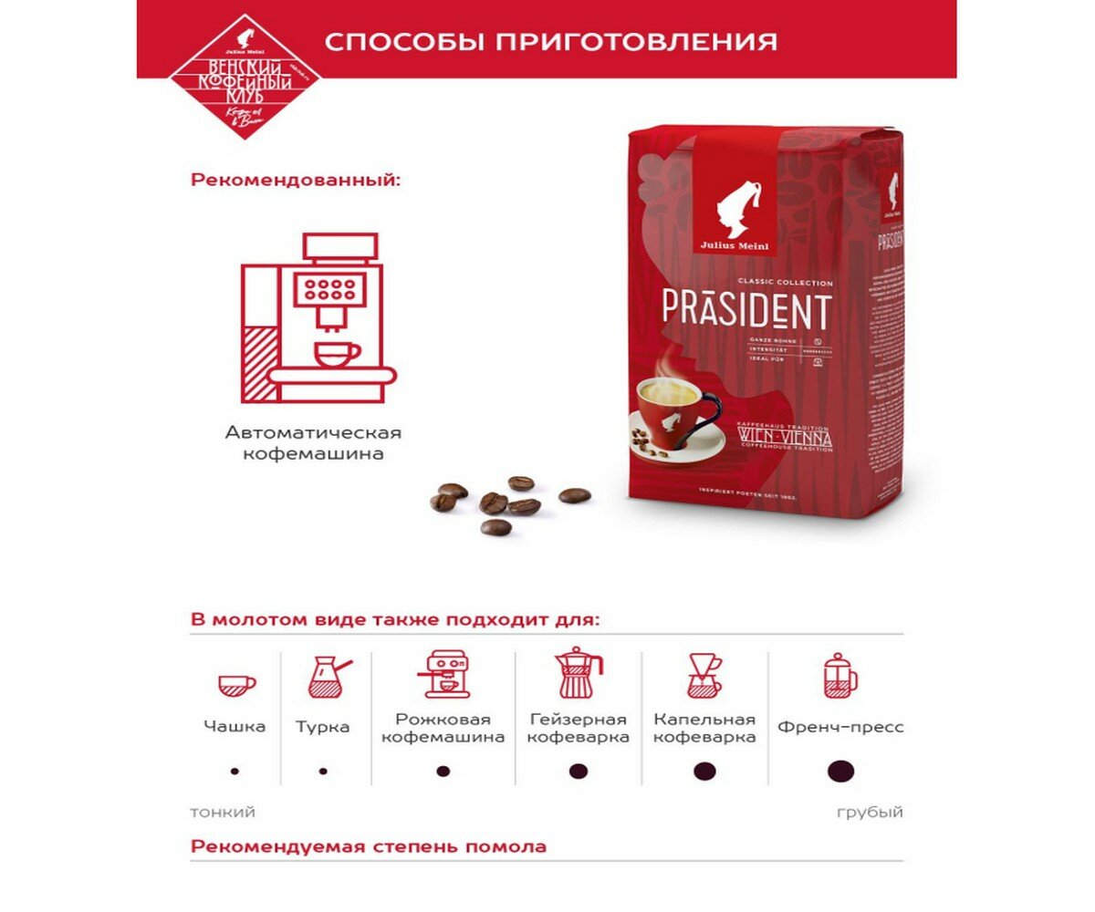 Кофе в зернах "Julius Meinl President" 1 кг, Италия интересное:
