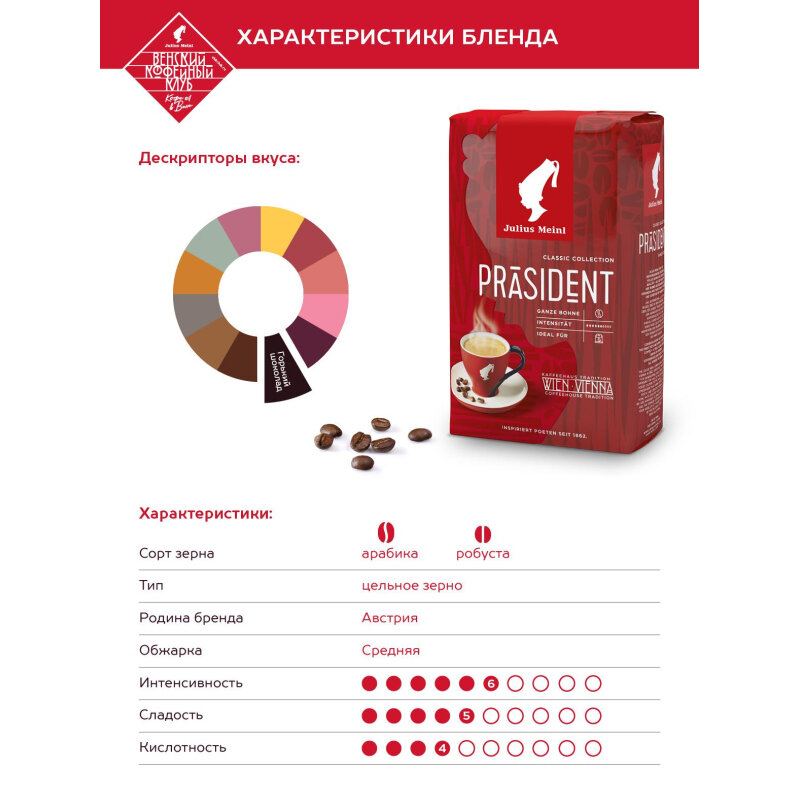Кофе в зернах Julius Meinl President Classic Collection, средняя обжарка, 500 г интересное: