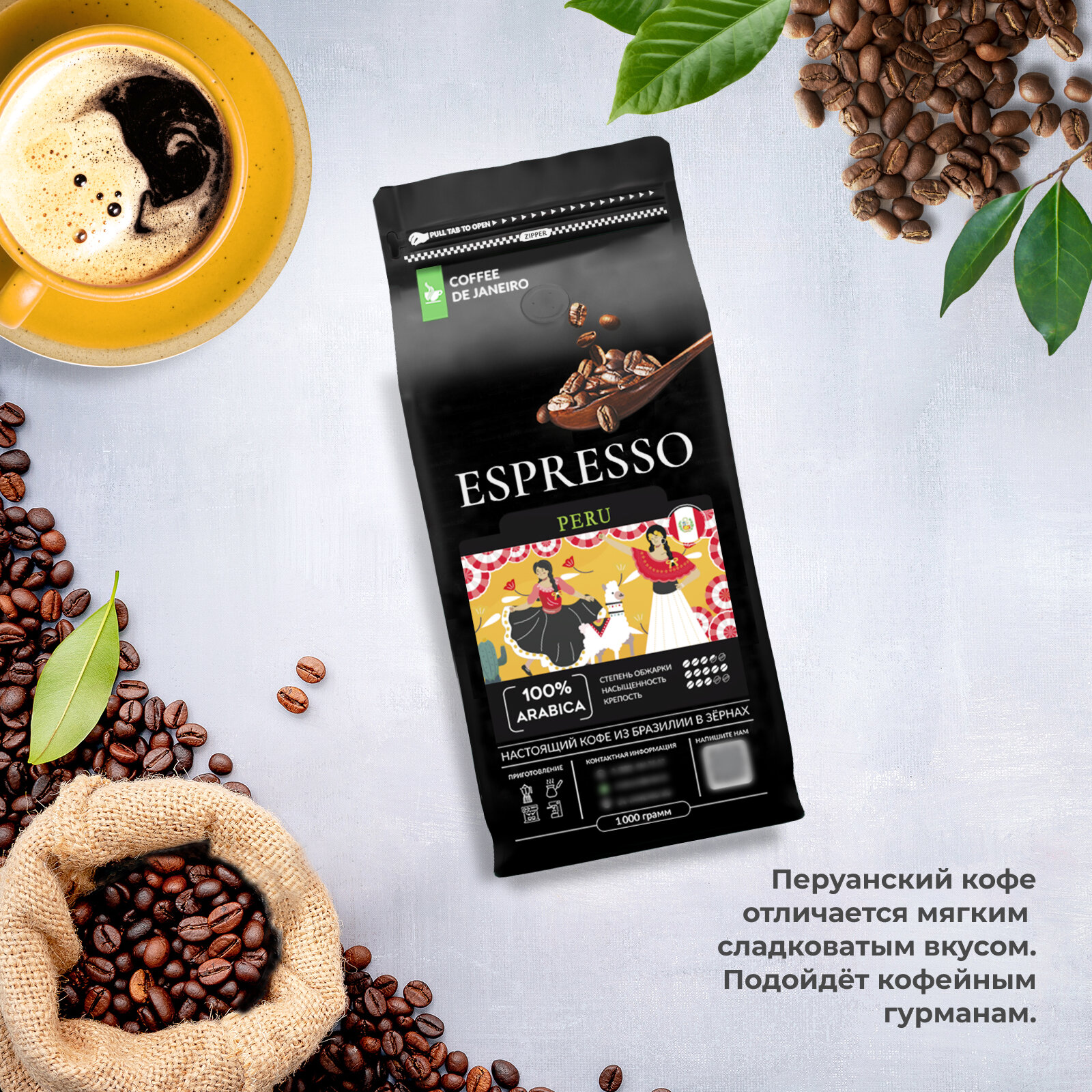 СохранитьКофе в зернах 1кг DE JANEIRO (ДЕ жанейро) ESPRESSO PERU 100% Арабика, в упаковке Zip-Lock, кофе зерновой интересное:
