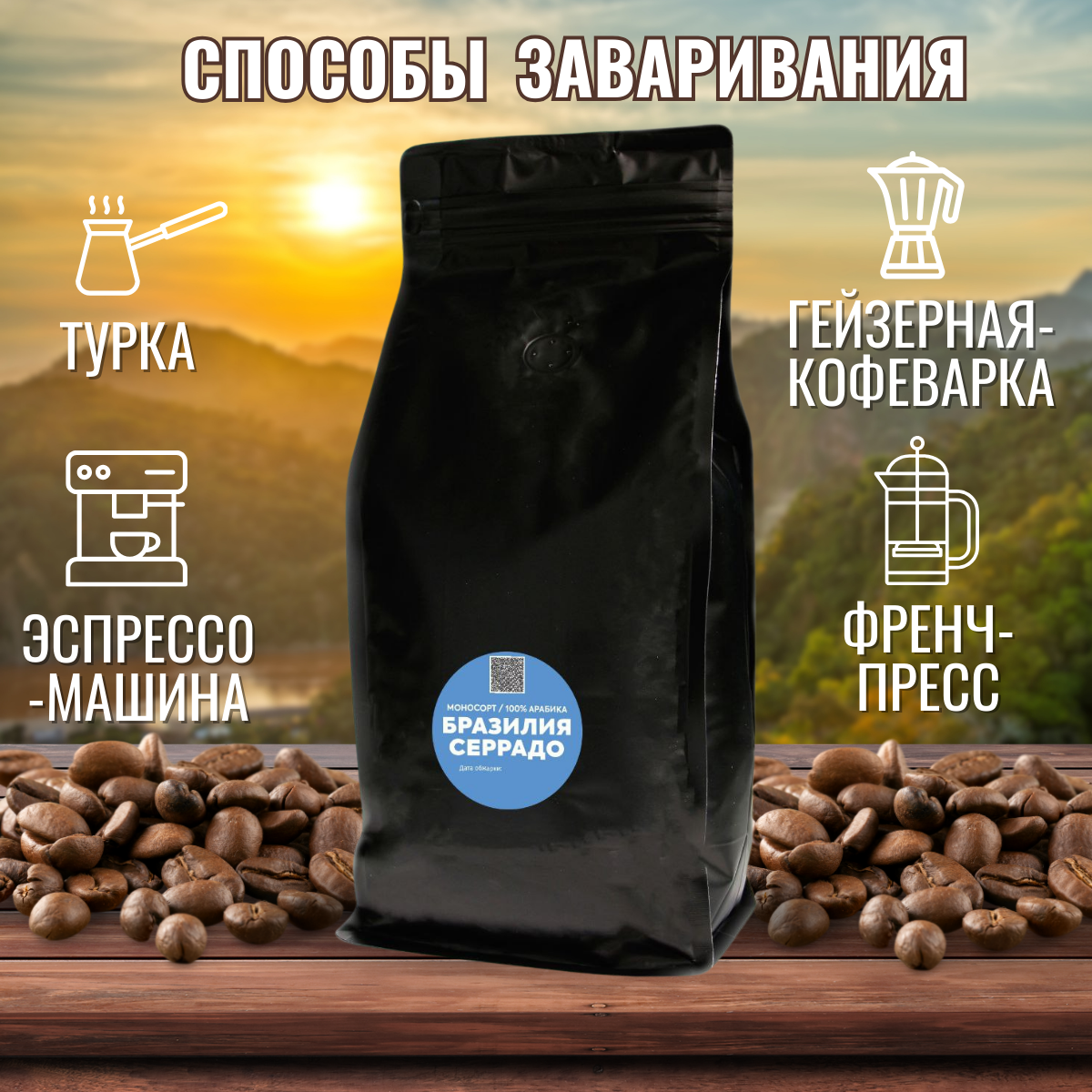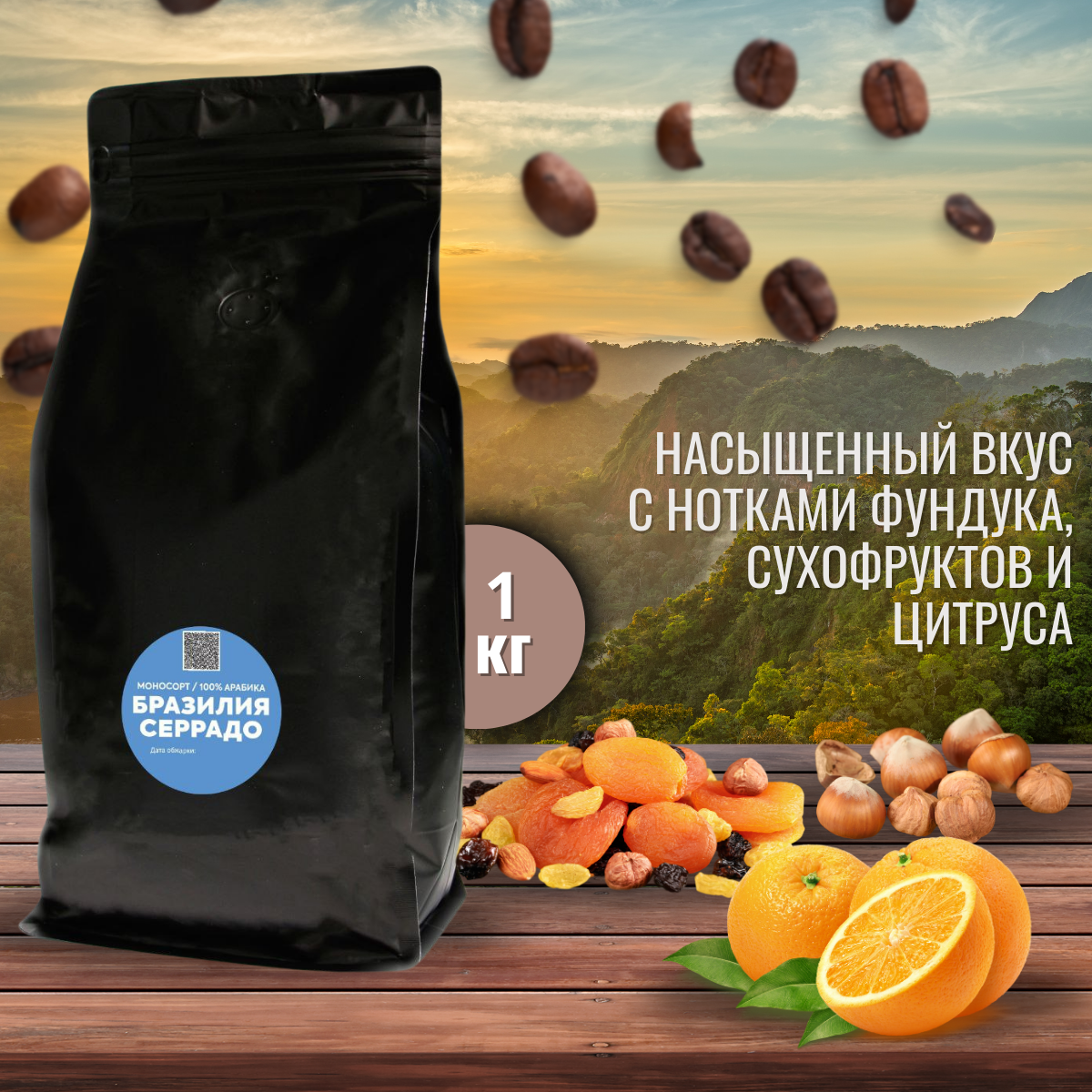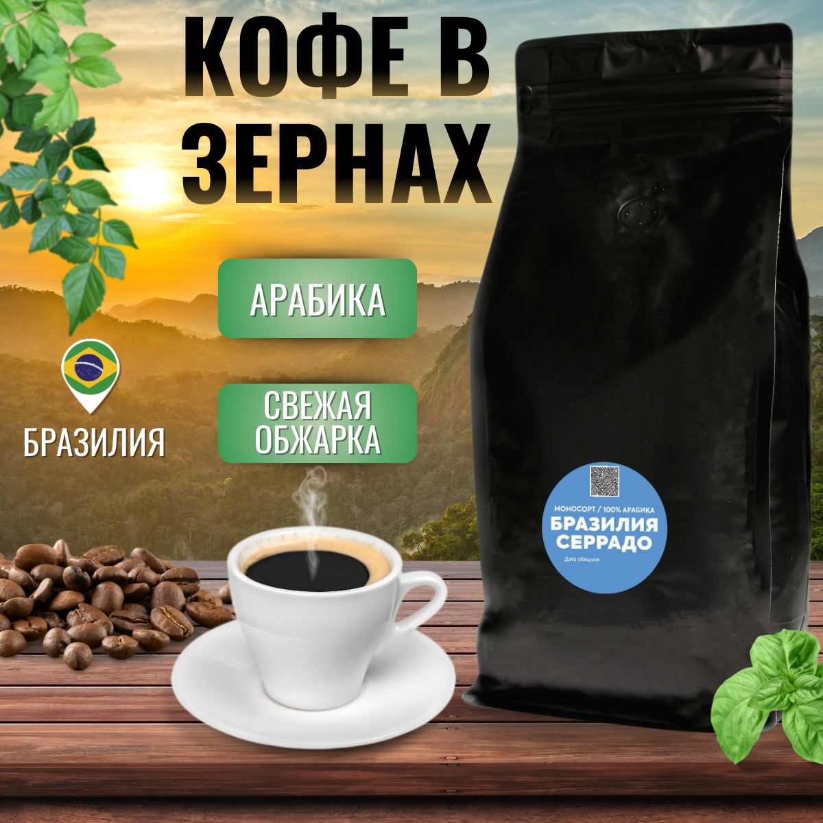 Кофе в зернах Бразилия Серрадо 1 кг свежая обжарка Арабика/ Можиана/Сантос/Серрадо/кофе в зернах/кофе зерновой/свежеобжаренный интересное: