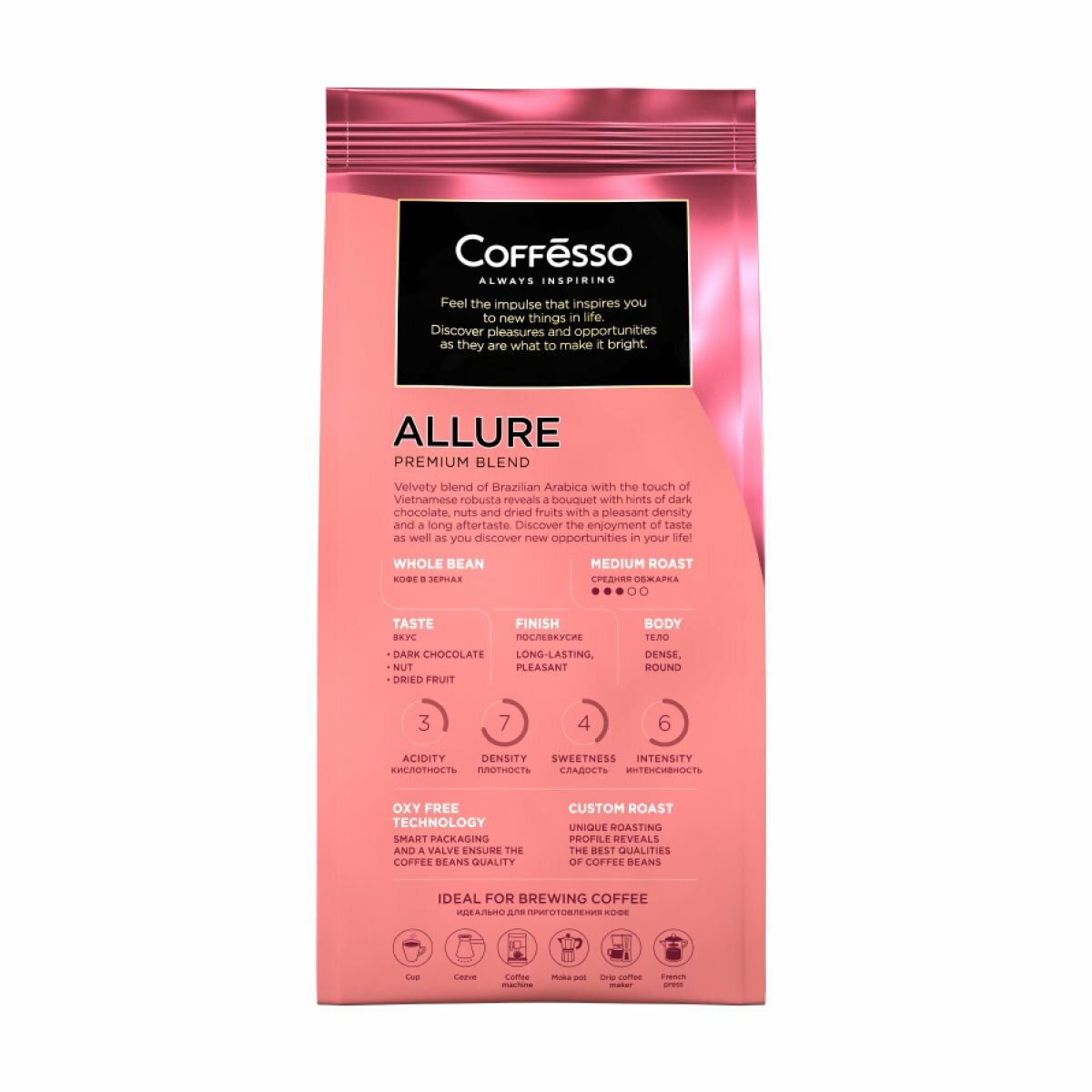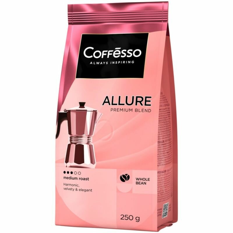 Кофе Coffesso "ALLURE"в зернах, мягкая упаковка 250г интересное: