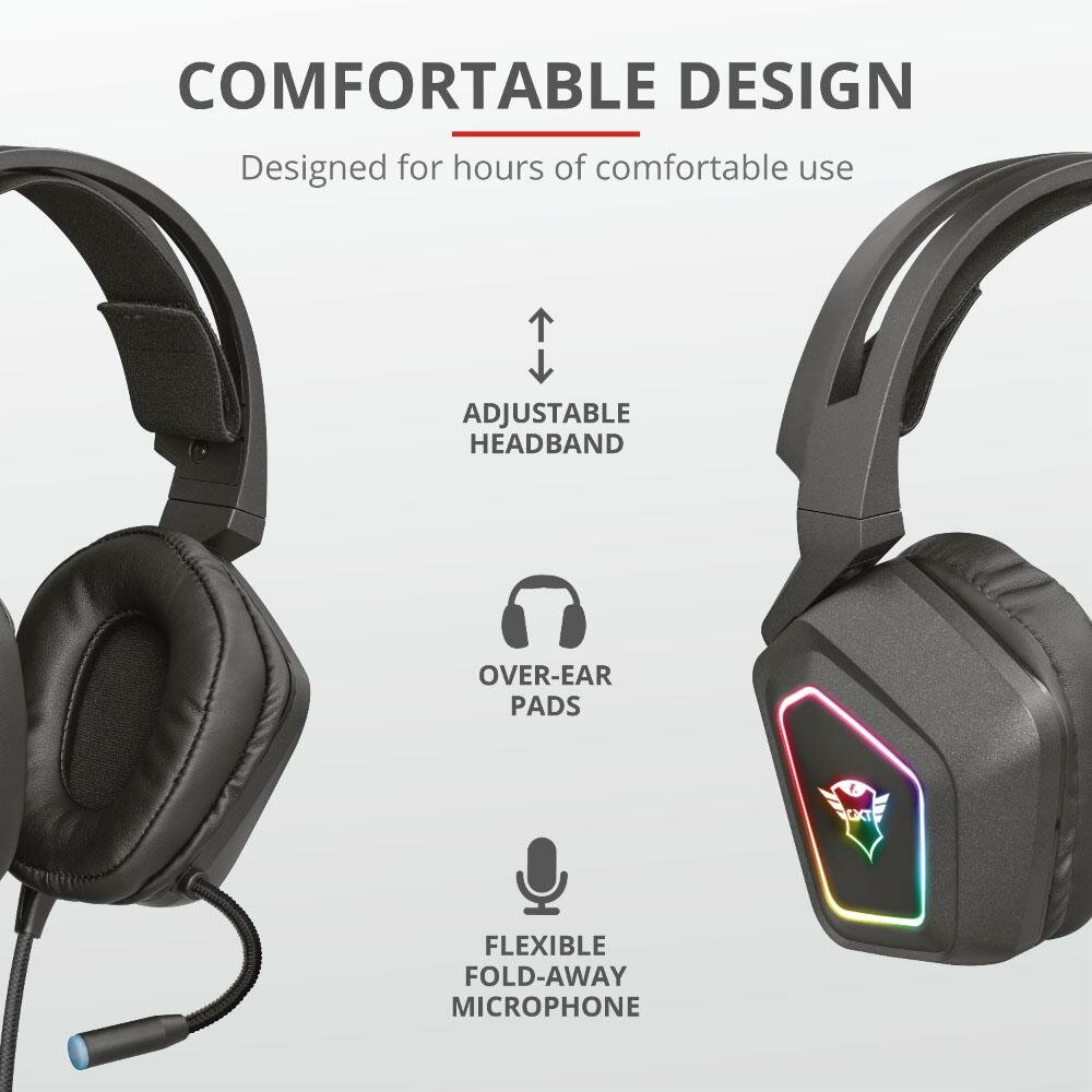 Наушники Trust Gaming Headset GXT 450 Blizz, Stereo, USB, Сlosed-back, Illuminated, Black