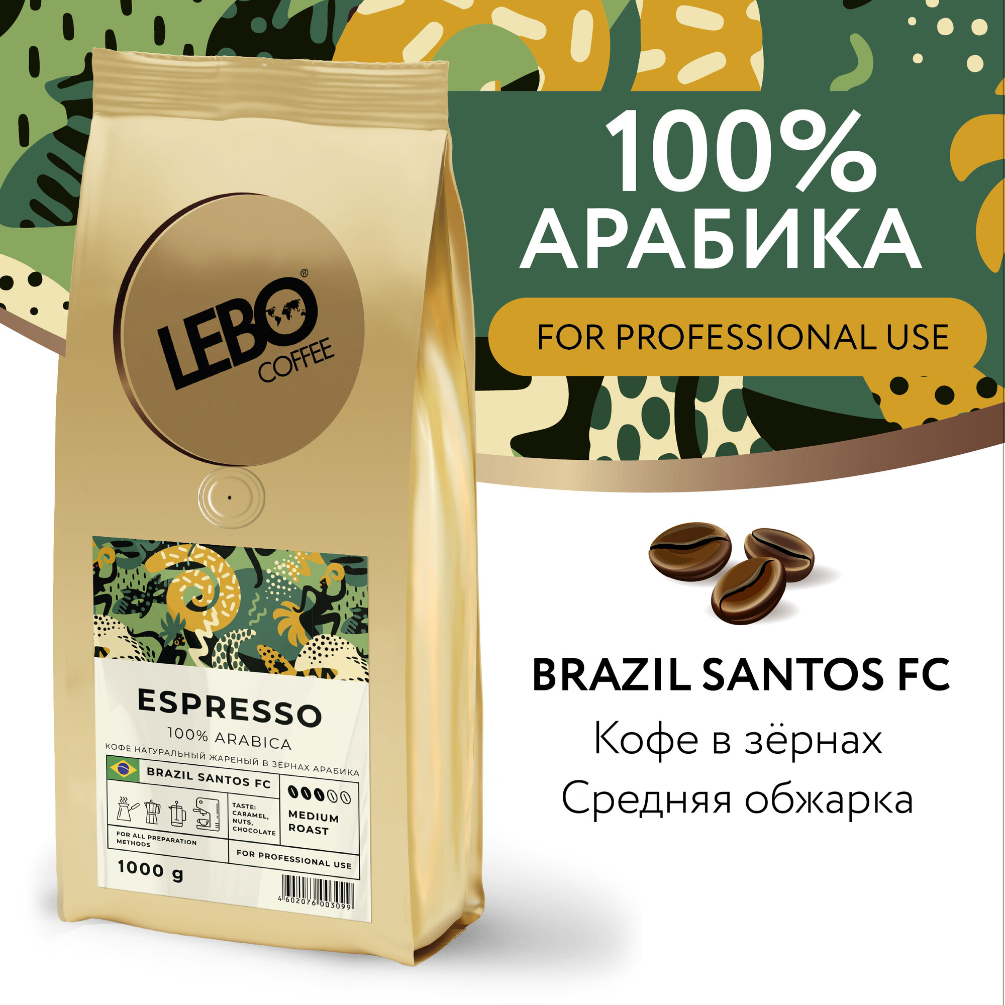 Купить Кофе в зернах Lebo ESPRESSO BRAZIL SANTOS FC Арабика 100% , 1000 г