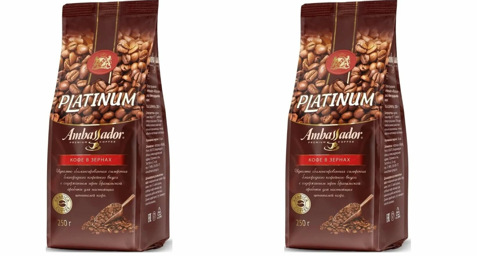 Купить Ambassador Кофе зерновой Platinum, 250 г, 2 уп