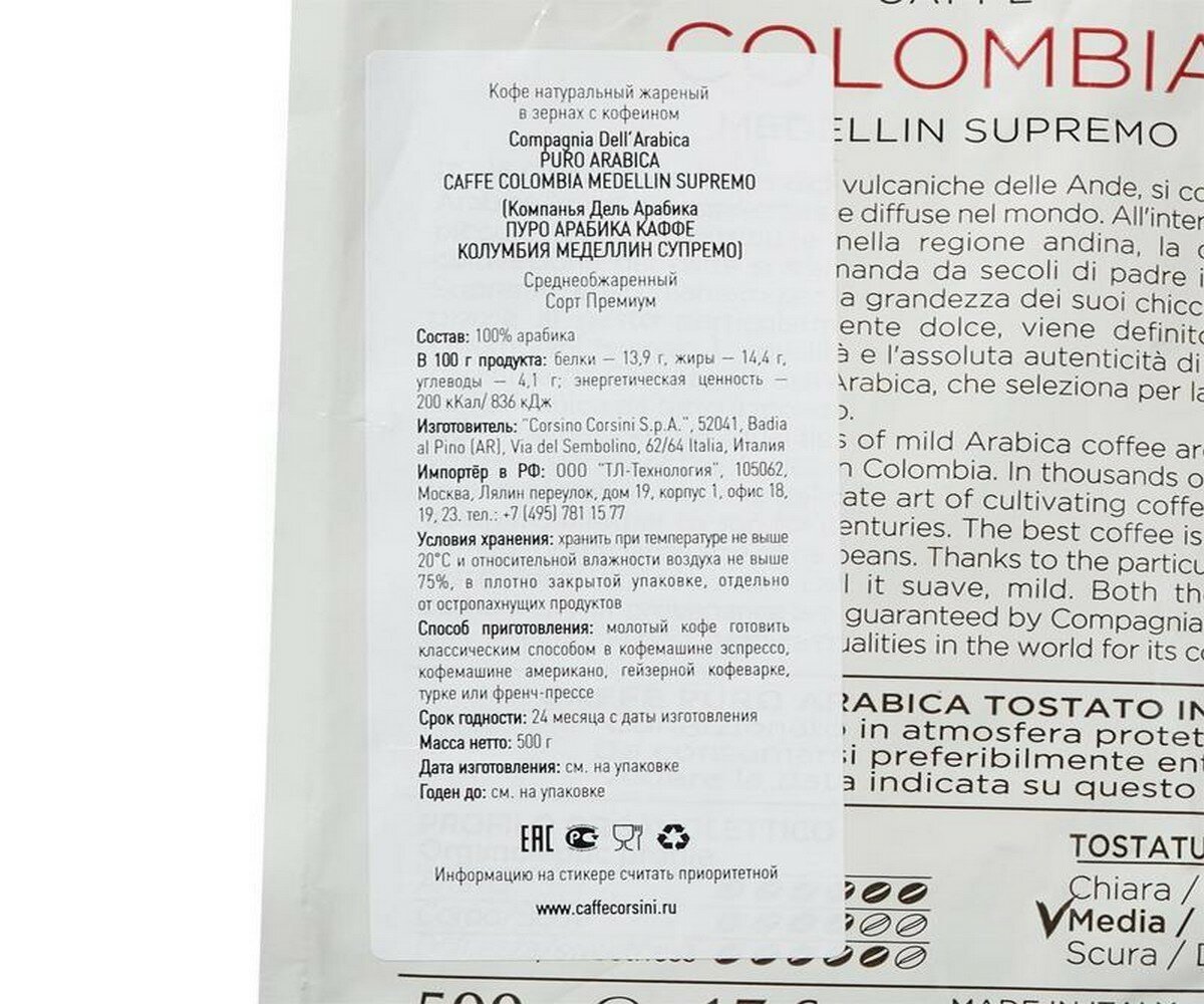 Купить Кофе в зернах Compagnia Dell'Arabica Colombia Medellin Supremo (Колумбия) 500 г