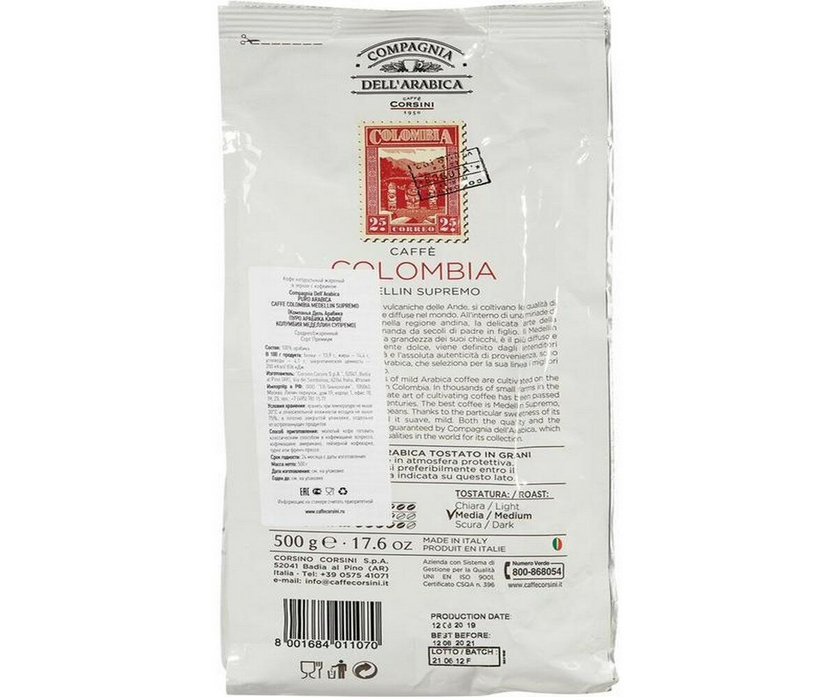 Compagnia Dell'Arabica Colombia Medellin Supremo кофе в зернах 500г пакет (11070)