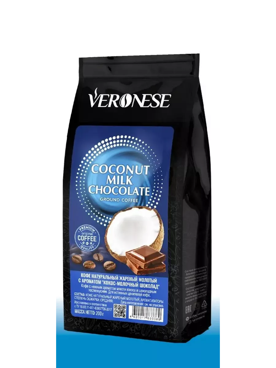 Кофе молотый Veronese с ароматом COCONUT MILK CHOCOLATE (Кокос-молочный шоколад), жареный, 200 г интересное: