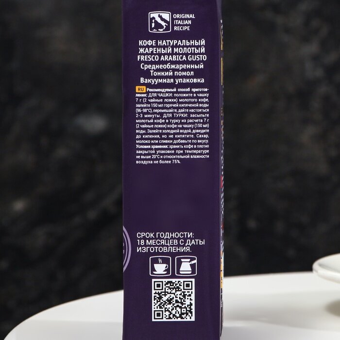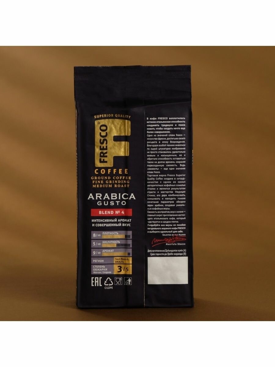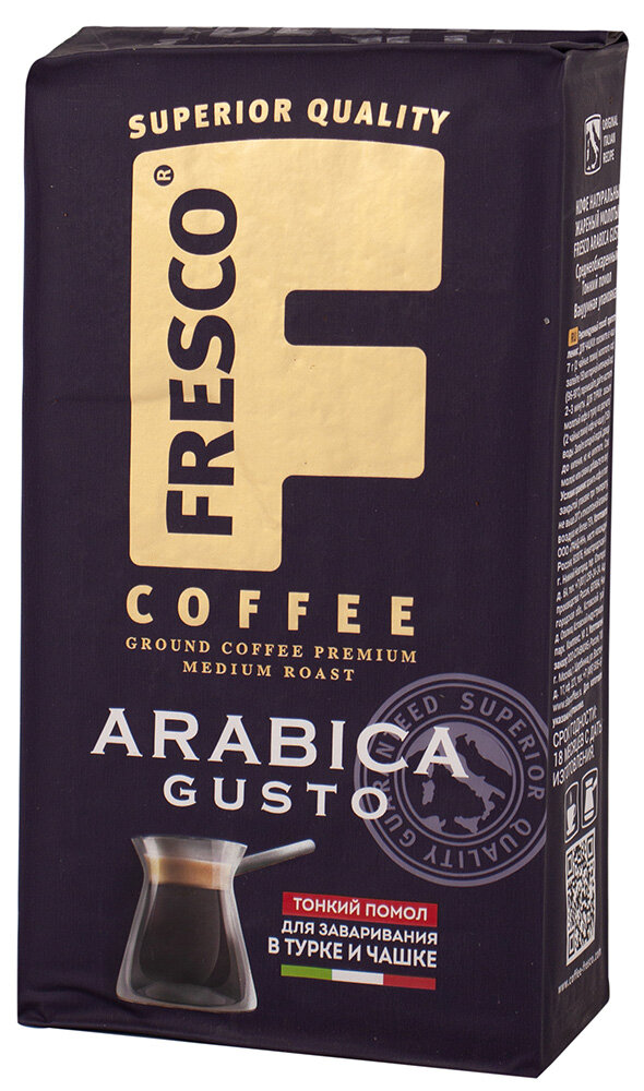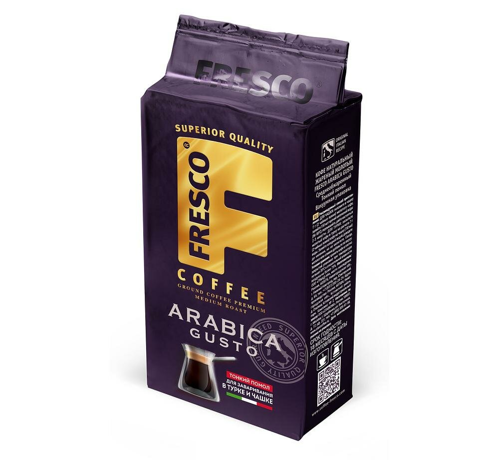 Кофе FRESCO Arabica Gusto 250г для турки и чашки, молотый, вакуумная упаковка интересное:
