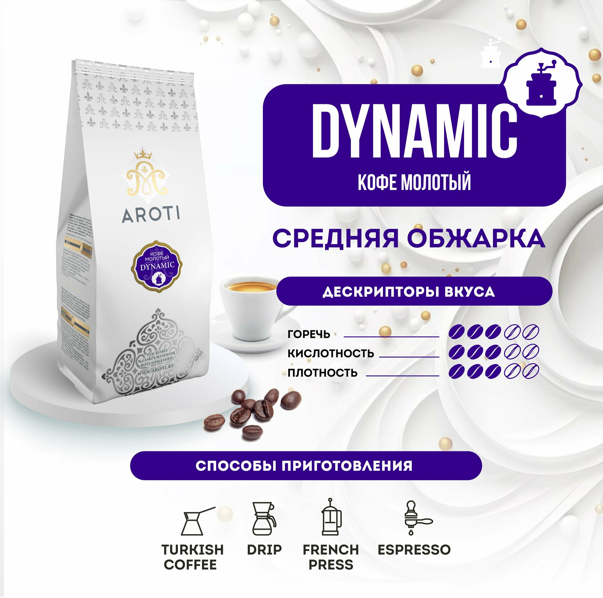 Кофе молотый DYNAMIC, Aroti, робуста, свежая обжарка, 250 гр. интересное:
