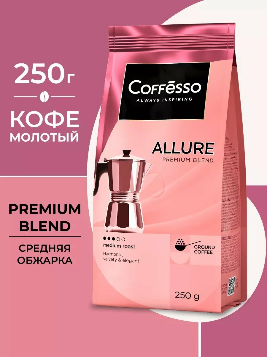 Кофе Coffesso "ALLURE" молотый, мягкая упаковка 250г интересное: