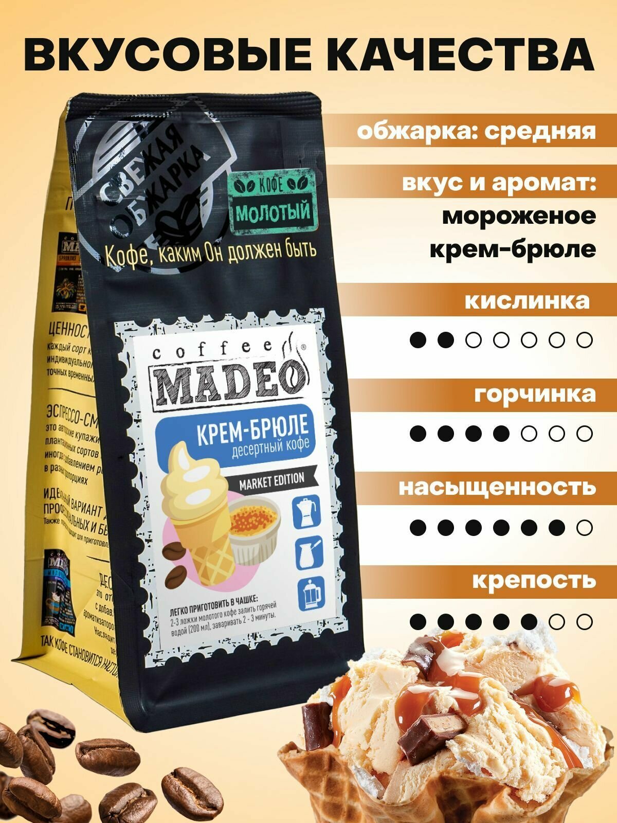 Молотый кофе Крем Брюле Madeo 200 г, 100% арабика, с ароматом мороженого крем-брюле интересное: