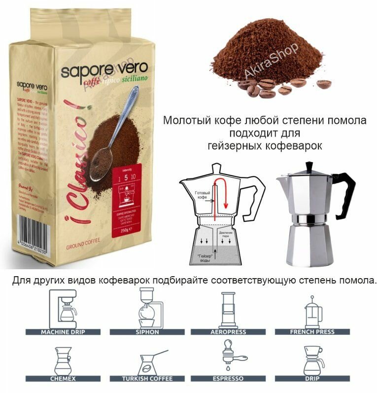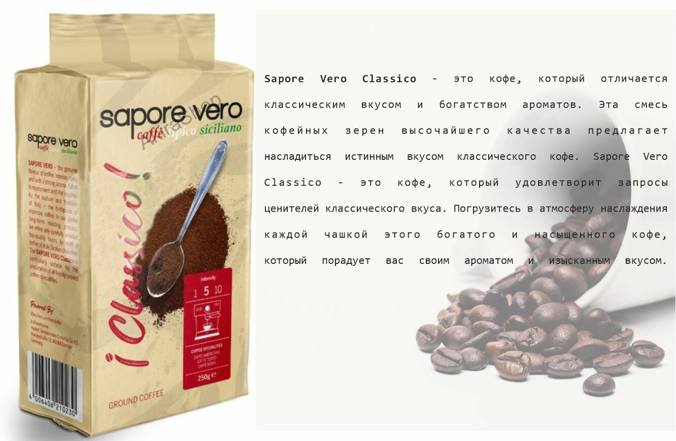 Sapore Vero Classico, молотый, 250 гр интересное:
