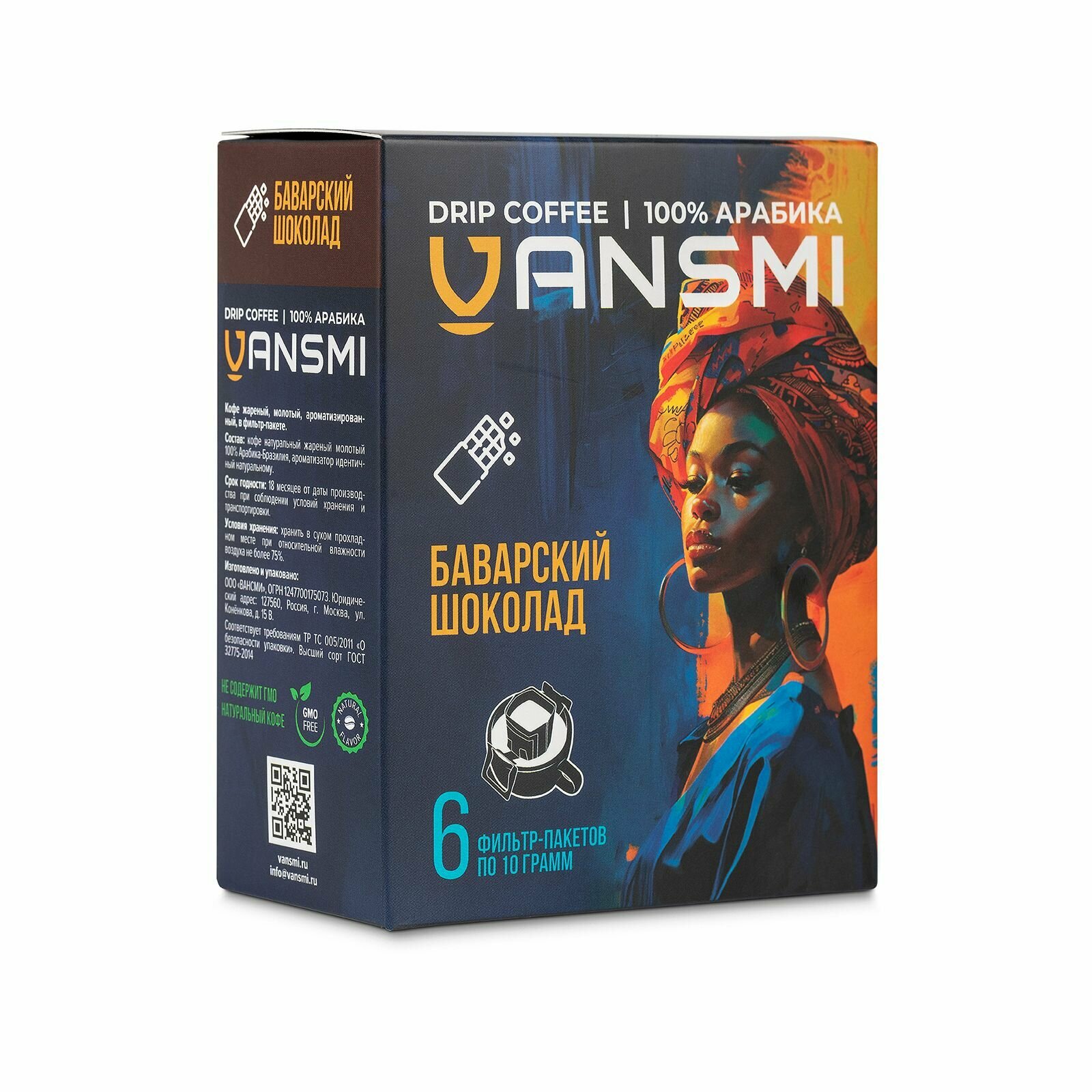 Купить Дрип кофе VANSMI Баварский шоколад 6шт*10гр Кофе молотый ароматизированный в дрип пакетах