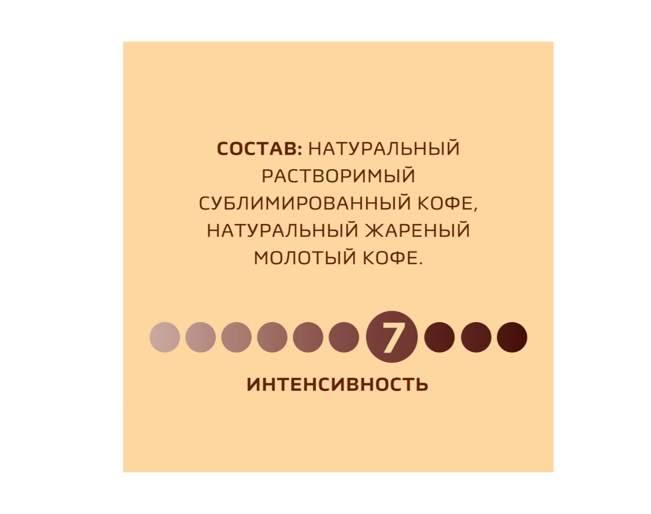 | Состав | натуральный растворимый сублимированный кофе, натуральный жареный молотый кофе |