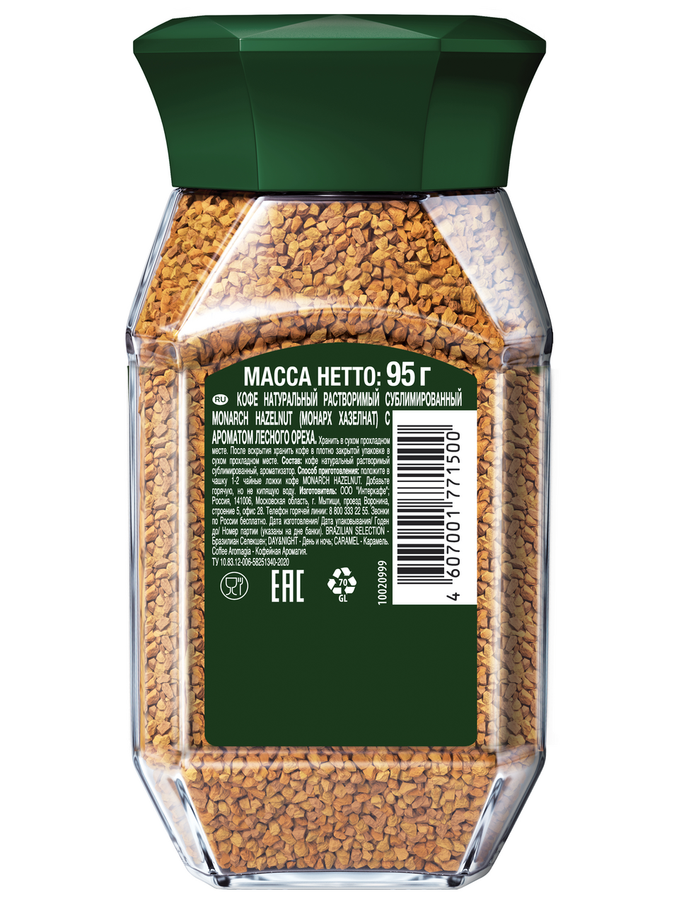 Кофе растворимый Monarch Hazelnut с ароматом лесного ореха, 95 г интересное: