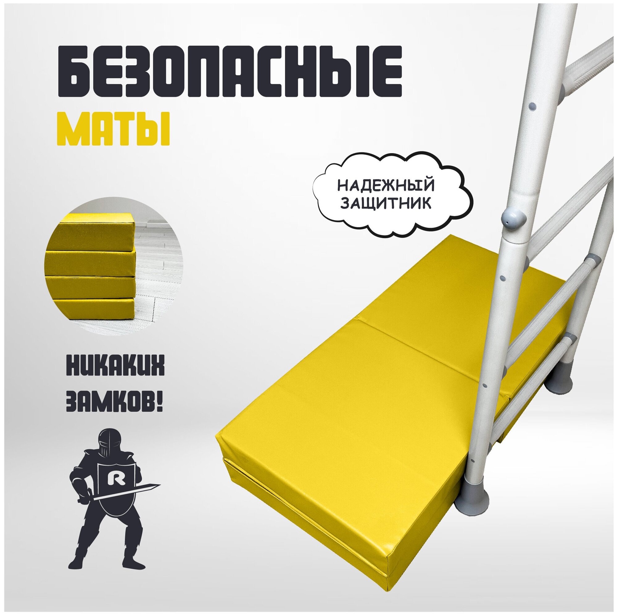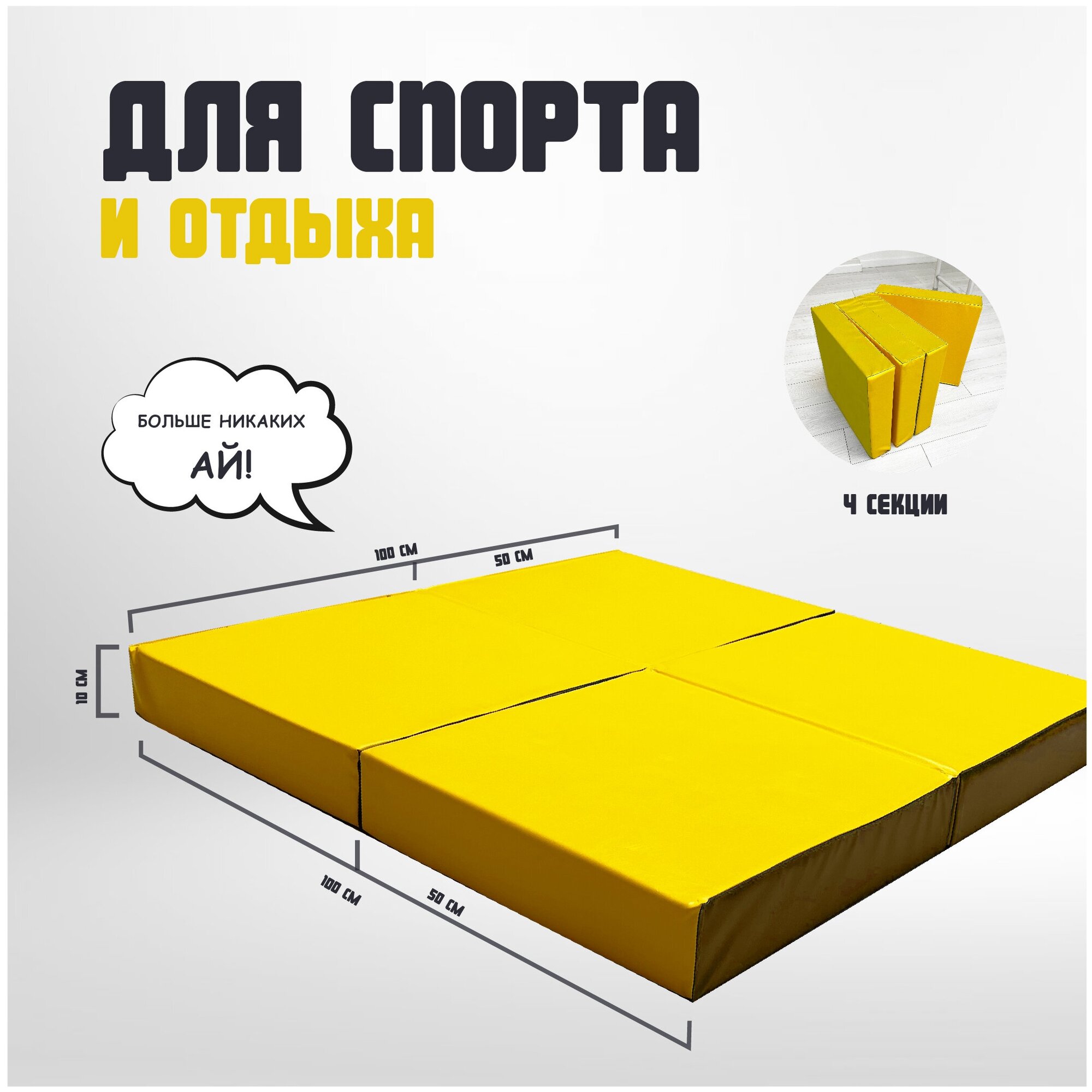 Мат гимнастический складной спортивный для шведской стенки мягкий детский 4 секции 100х200х10 см, толщина 10см. Цвет синий/желтый