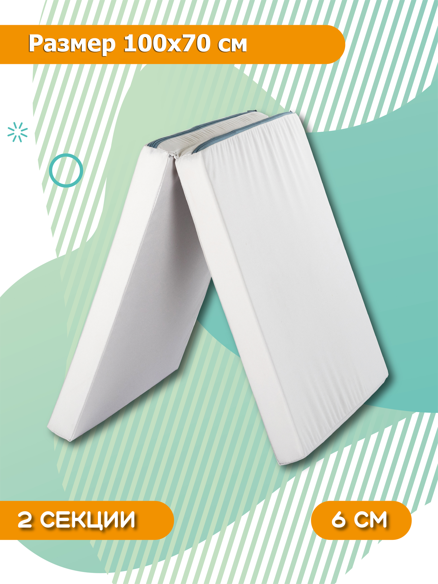 Мат гимнастический складной спортивный для шведской стенки мягкий щит детский 2 секции 100х70х6 см цвет серо-зеленый