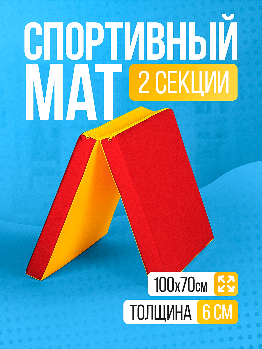 Купить Мат гимнастический складной спортивный для шведской стенки мягкий щит детский 2 секции 100х70х6 см цвет желто-красный