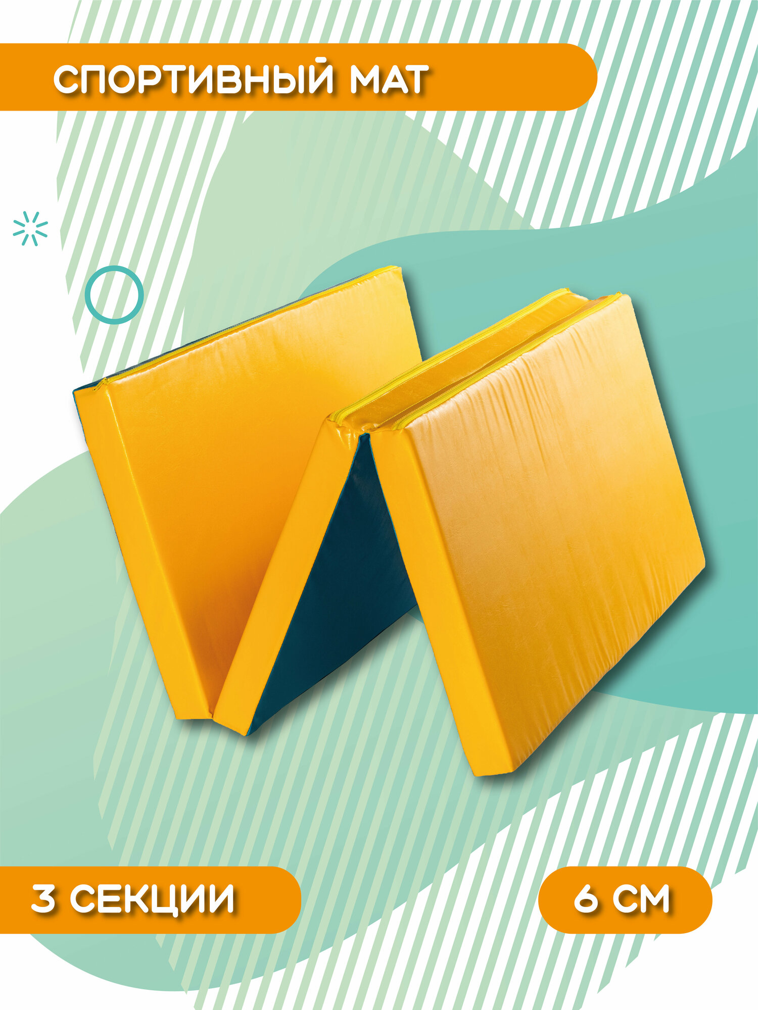 Мат гимнастический складной спортивный для шведской стенки мягкий щит детский 3 секции 100х150х6 см, толщина 6 см. Цвет синий/желтый интересное: