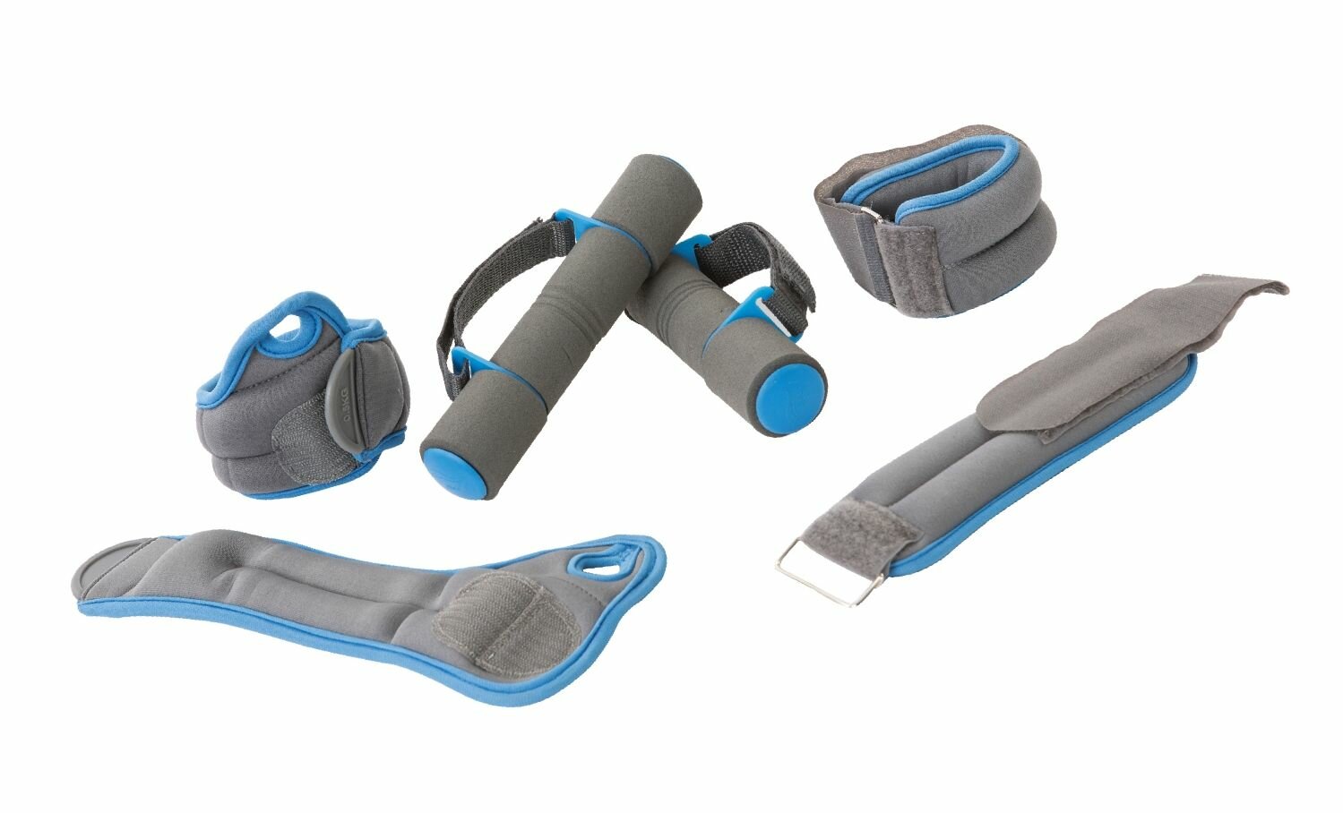 | Комплектация | Утяжелители для ног 2шт. по 0,5 кг. Утяжелители для рук 2 шт. по 0,5 кг. Гантели мягкие 2ш. по 0,5 кг. |