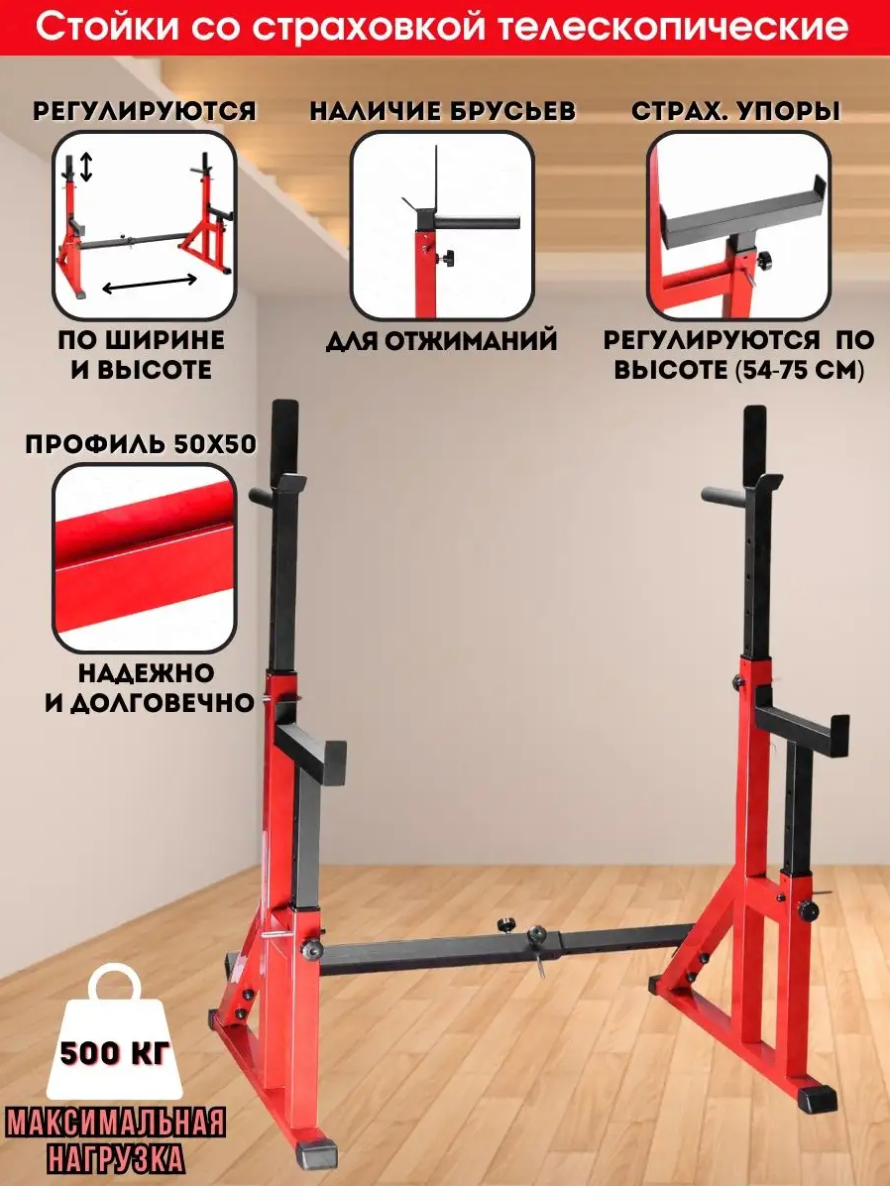 Стойки под штангу со страховкой телескопические (красные) интересное: