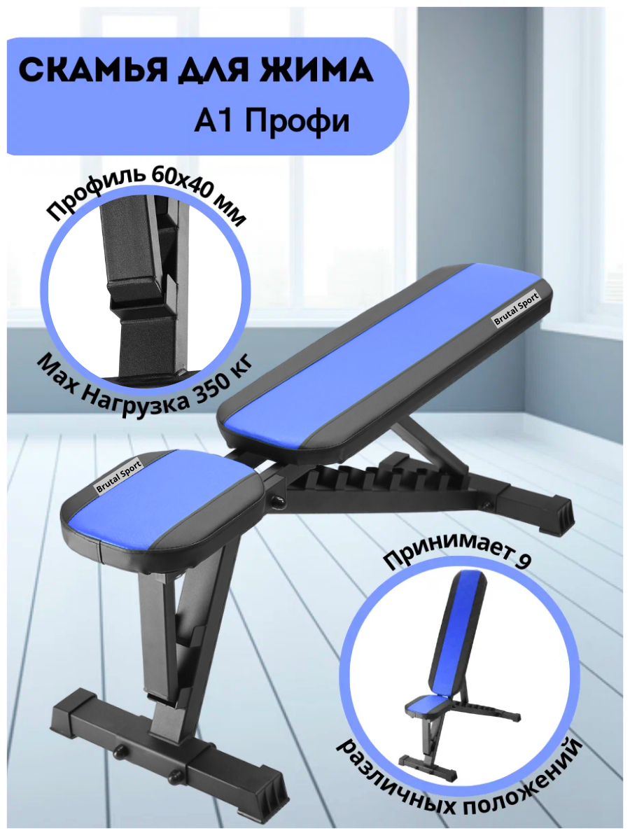 Скамья для жима Brutal Sport A1 Профи Черно-синяя интересное: