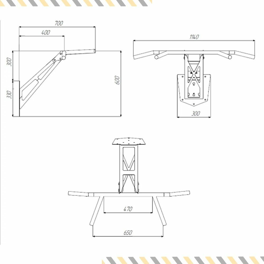 | Комплектация | Кронштейн - сталь 3 мм. Крепление на стену - сталь 5 мм. Перекладины с хватами - 1 шт. Анкера для крепления на стену - 6 шт. Крепеж для перекладины - 1 компл. |