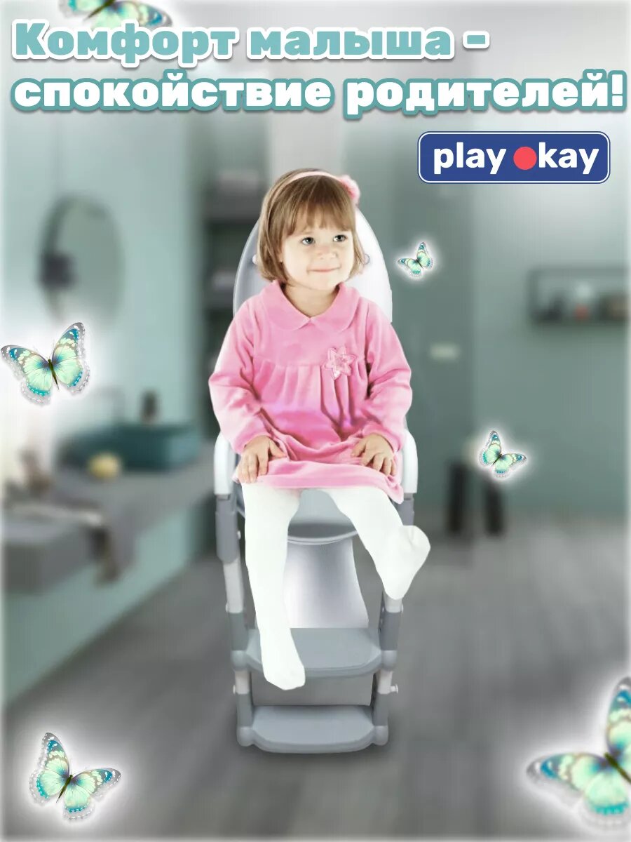 Накладка на унитаз детская с лесенкой Play Okay сиденье c подставкой, стульчак ободок со ступенькой, мягкий и анатомический, универсальный и комфортный из безвредного материала, цвет серый