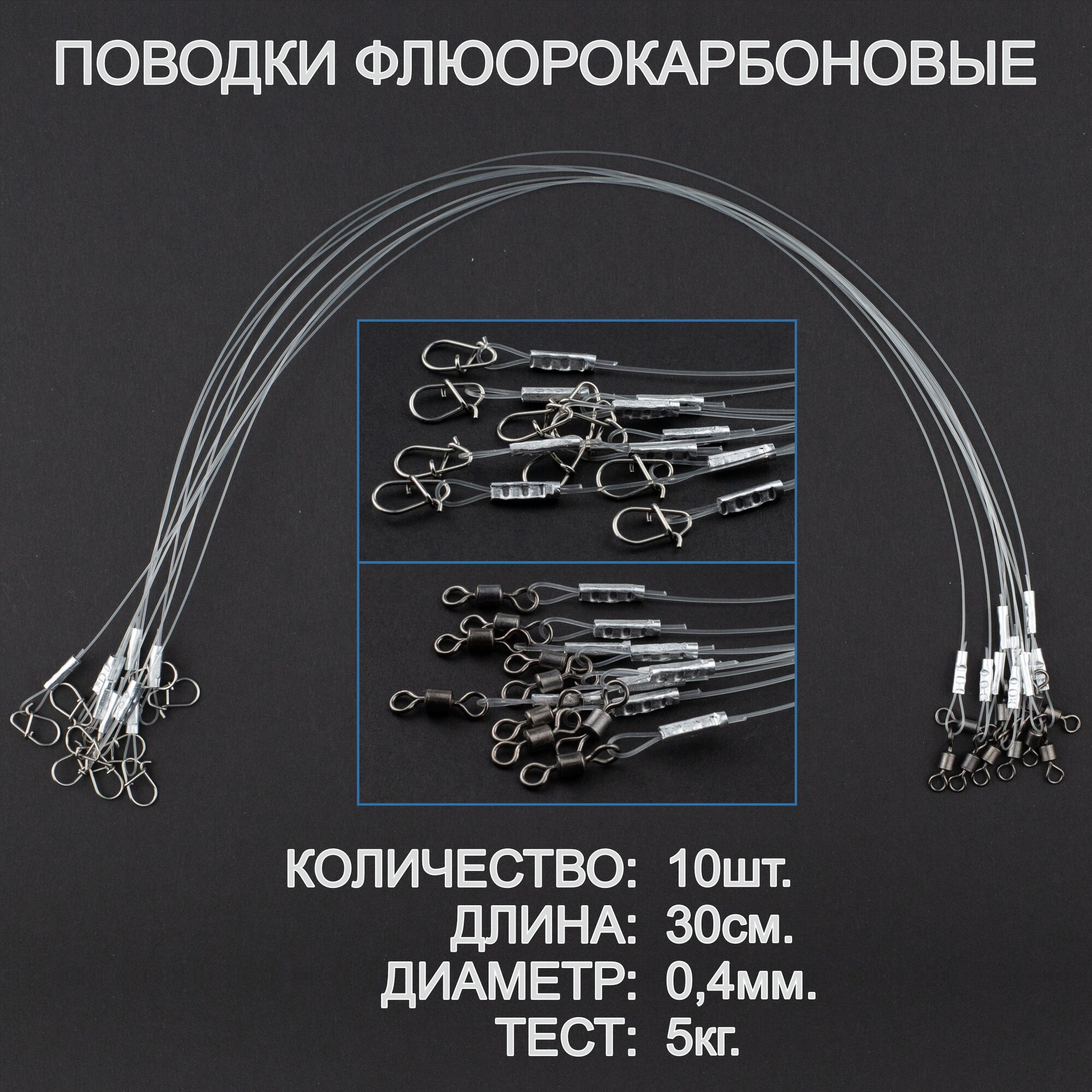 Поводки рыболовные, флюорокарбон, оснащённые. 30 см, 0,4 мм, тест до 8,0 кг. 10 штук