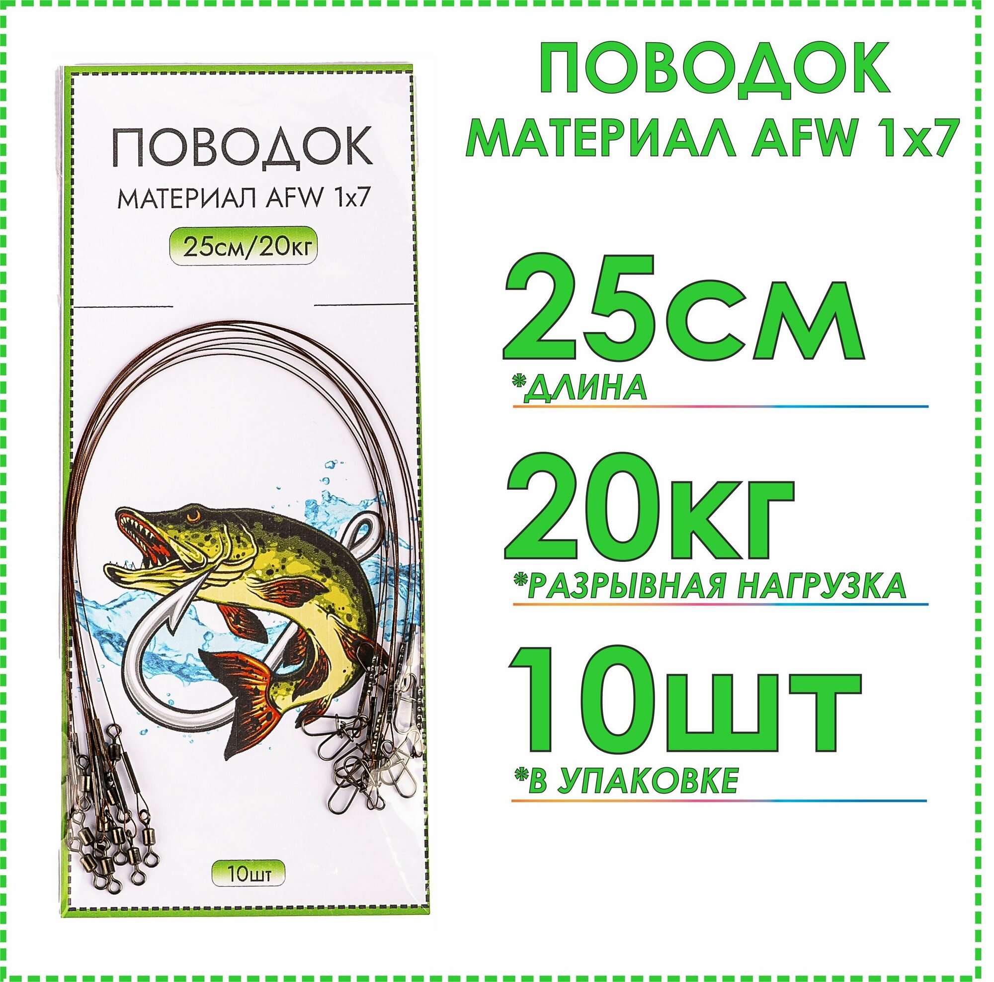 AFW 1х7 рыболовные поводки стальные тест 15 кг 25 см (10шт), на жерлицу, спиннинг, на кружки