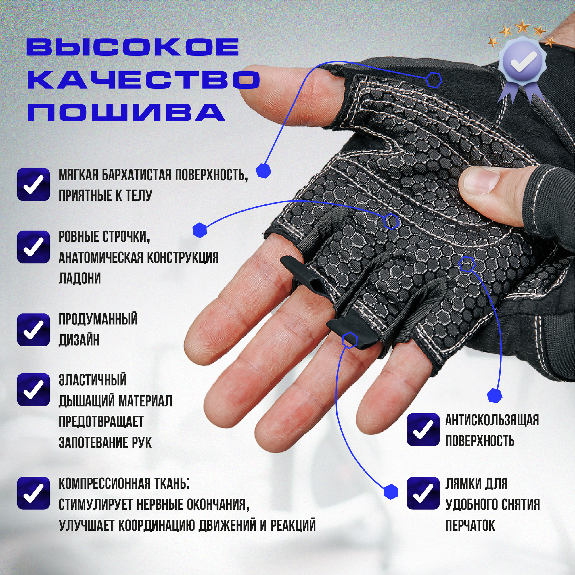 Перчатки спортивные, для фитнеса, велоперчатки, без пальцев, мужские, женские, размер L интересное: