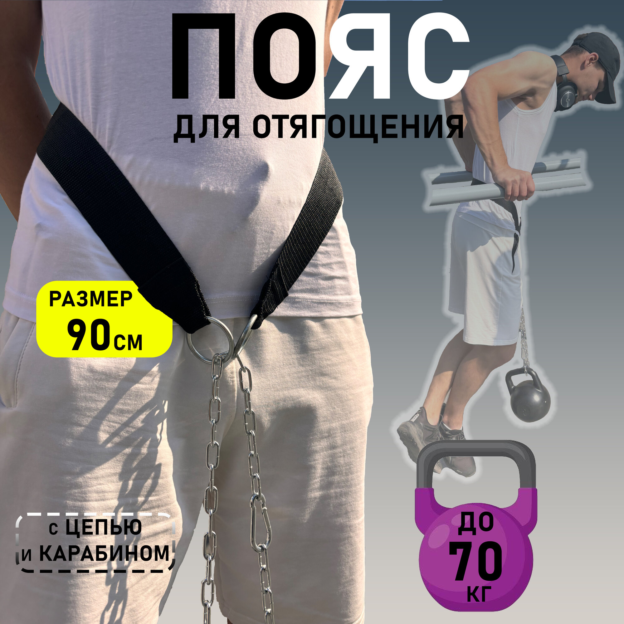 Пояс для отягощений с цепью и подвешивания утяжелений, для подтягиваний, чёрный, 90 см PRO