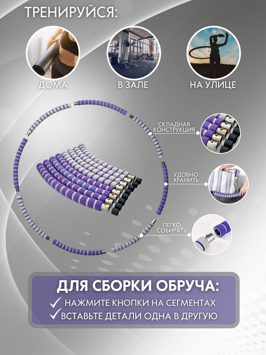 Обруч массажный SPRINGO "Холохуп" разборный, изменяемый вес, диаметр 83см, фиолетовый