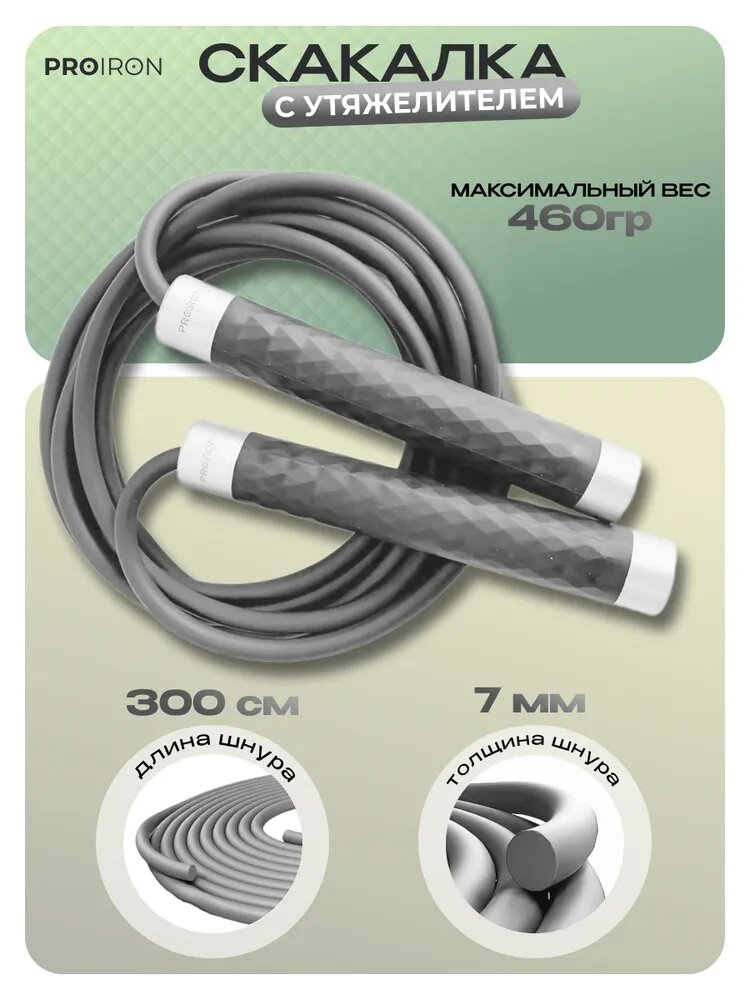 Скакалка, для фитнеса взрослая, PROIRON, с утяжелителями, серая интересное: