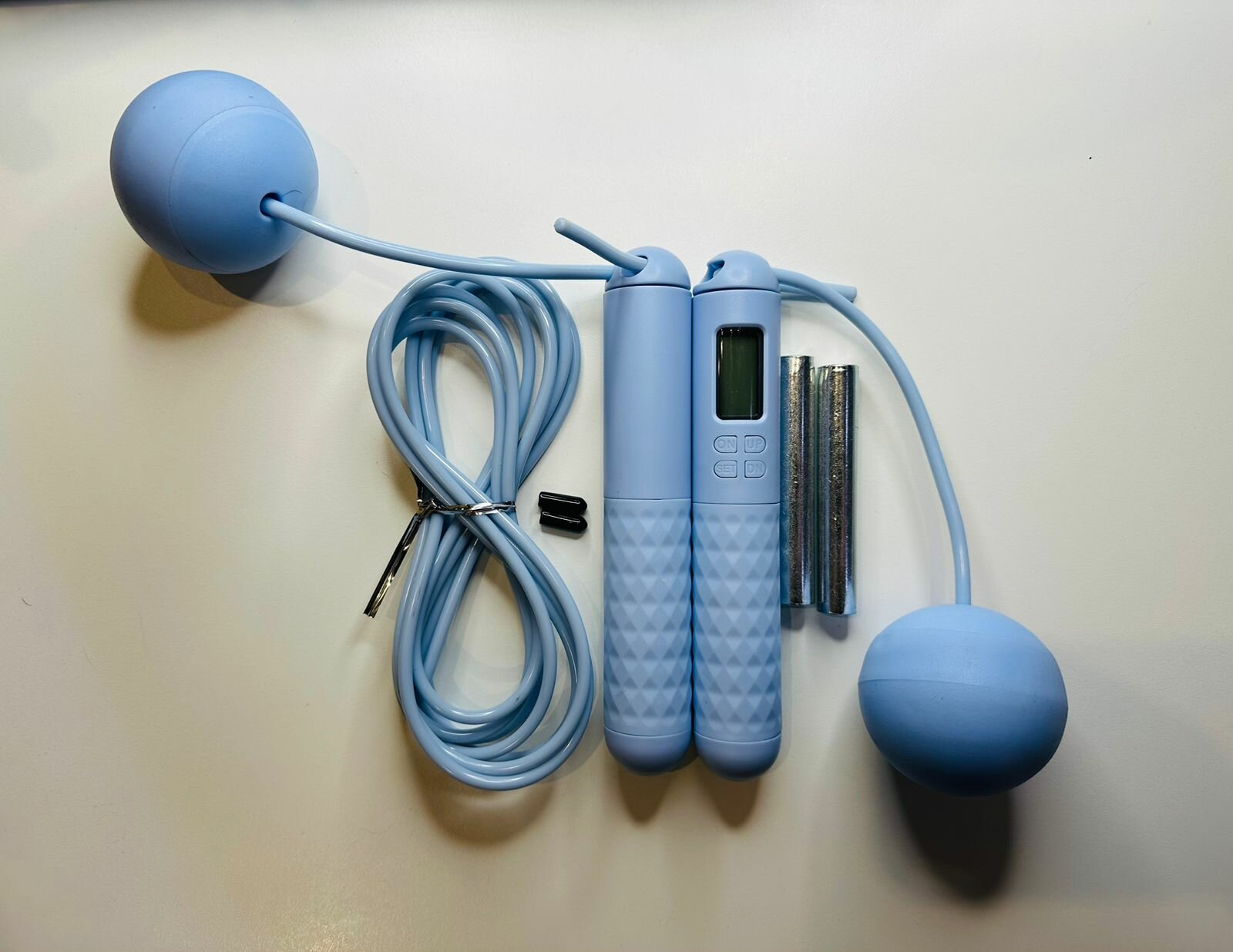 Умная скакалка Basalt для фитнеса с счетчиком прыжков серо-голубая интересное: