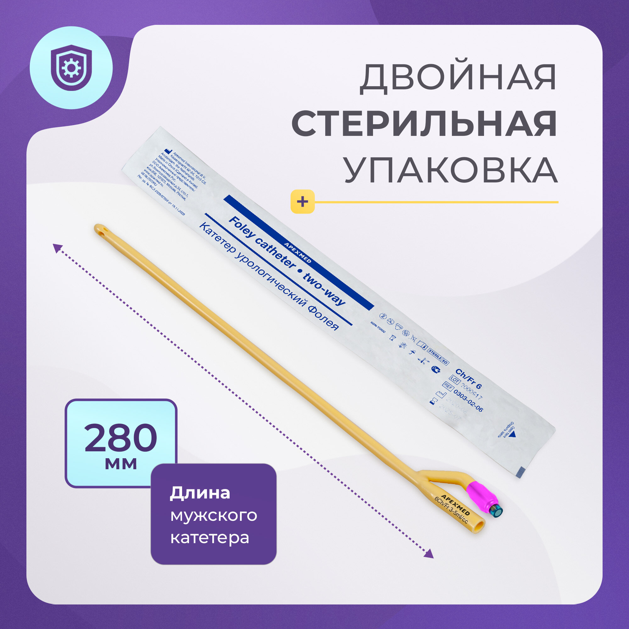 Катетер урологический Фолея мужской двухходовой, Ch/Fr 6, 10 шт, Apexmed интересное: