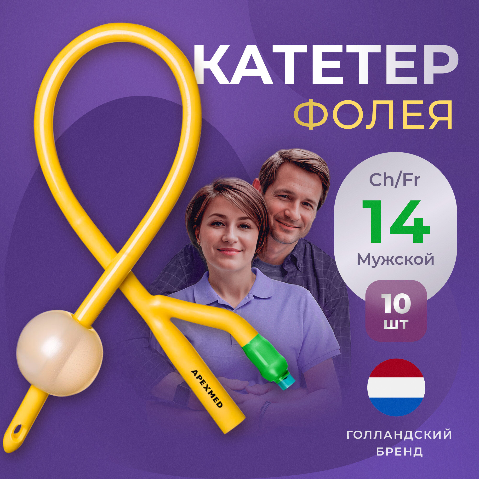 Купить Катетер урологический Фолея мужской двухходовой, Ch/Fr 14, 10 шт, Apexmed
