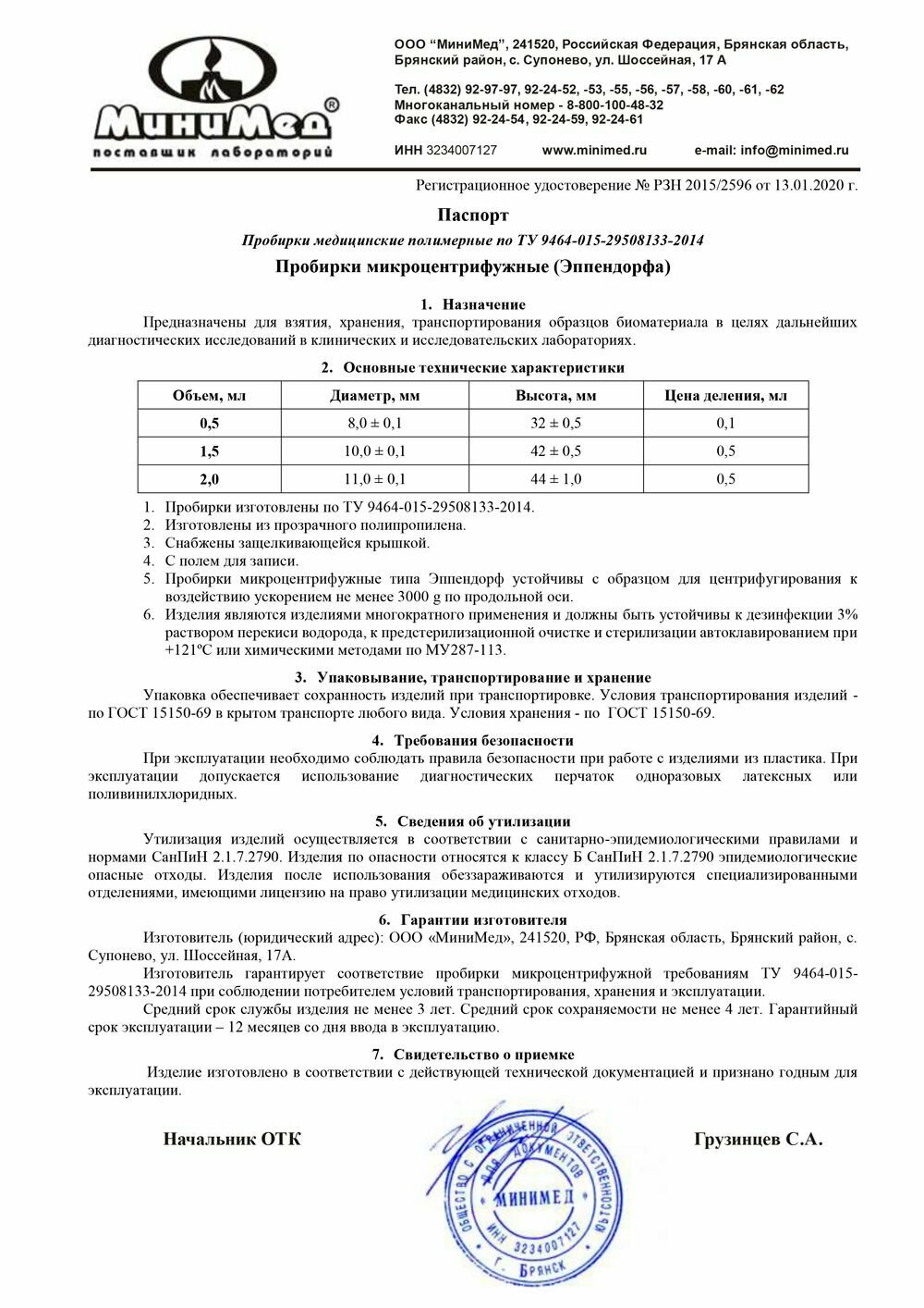 Пробирка микроцентрифужная (Эппендорфа) нестерильная 1,5 мл, с делением, полипропилен, 2 шт интересное:
