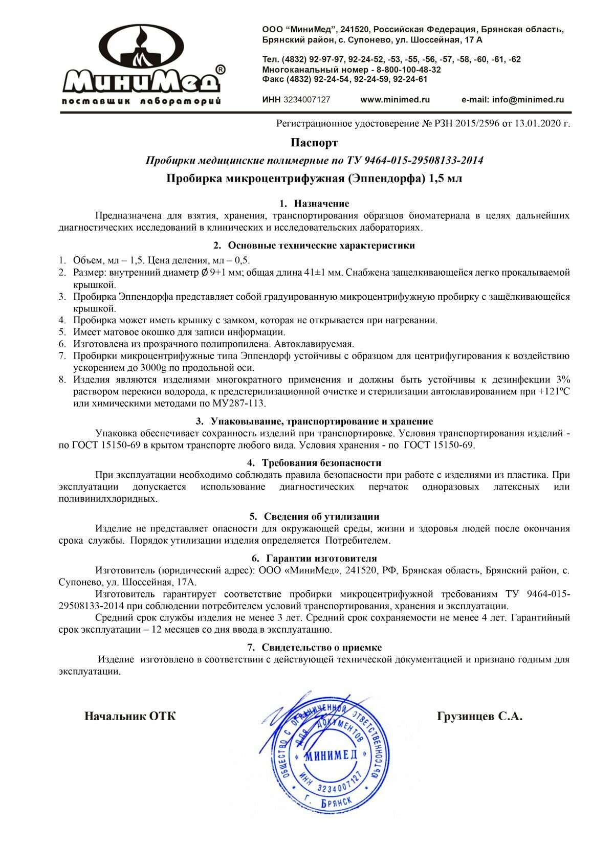 Пробирка микроцентрифужная (Эппендорфа) нестерильная 1,5 мл, с делением, полипропилен, 5 шт интересное: