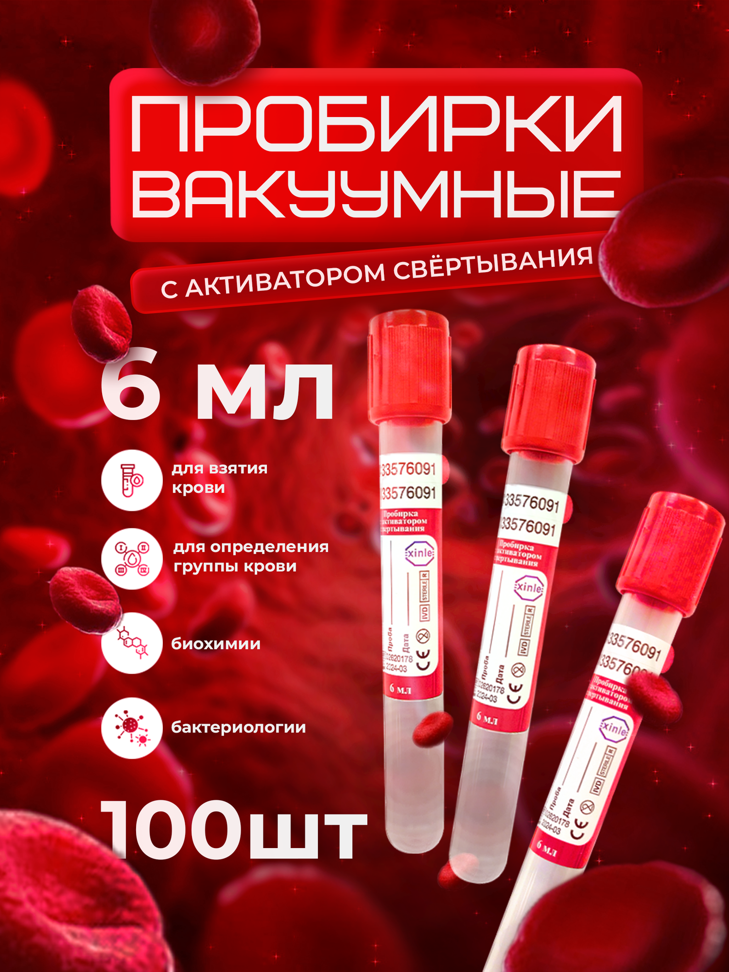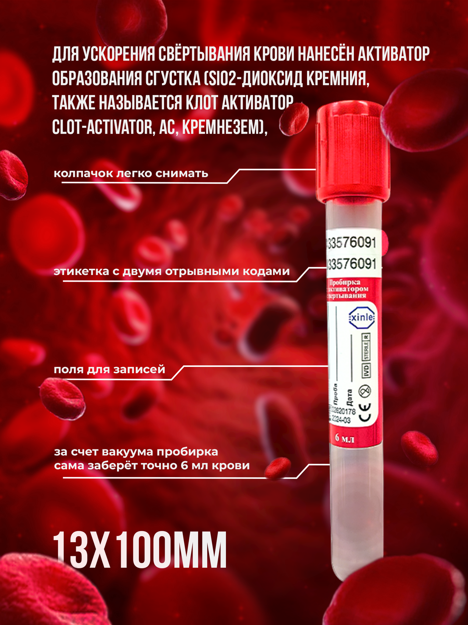 Пробирка вакуумная с активатором свертывания, 6мл., 13х100мм., 100шт. интересное: