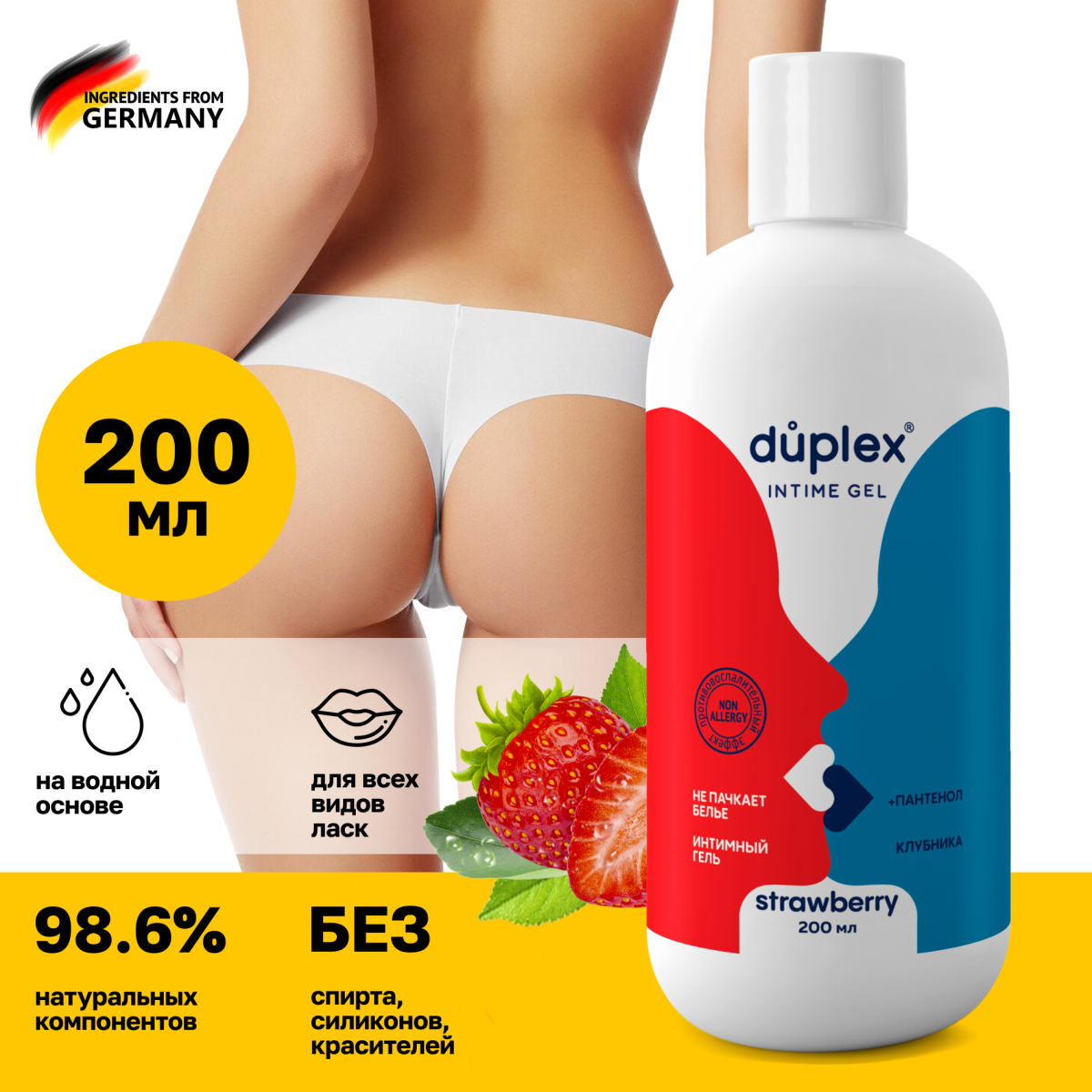Ниже Вы можете прочитать отзывы на Лубрикант Duplex интимный гель смазка со вкусом Клубника на водной основе анальный съедобный 18+, 200 мл, ознакомится с подробными характеристиками, посмотреть интересные обзоры и фотографии на Лубрикант Duplex интимный гель смазка со вкусом Клубника на водной основе анальный съедобный 18+, 200 мл.