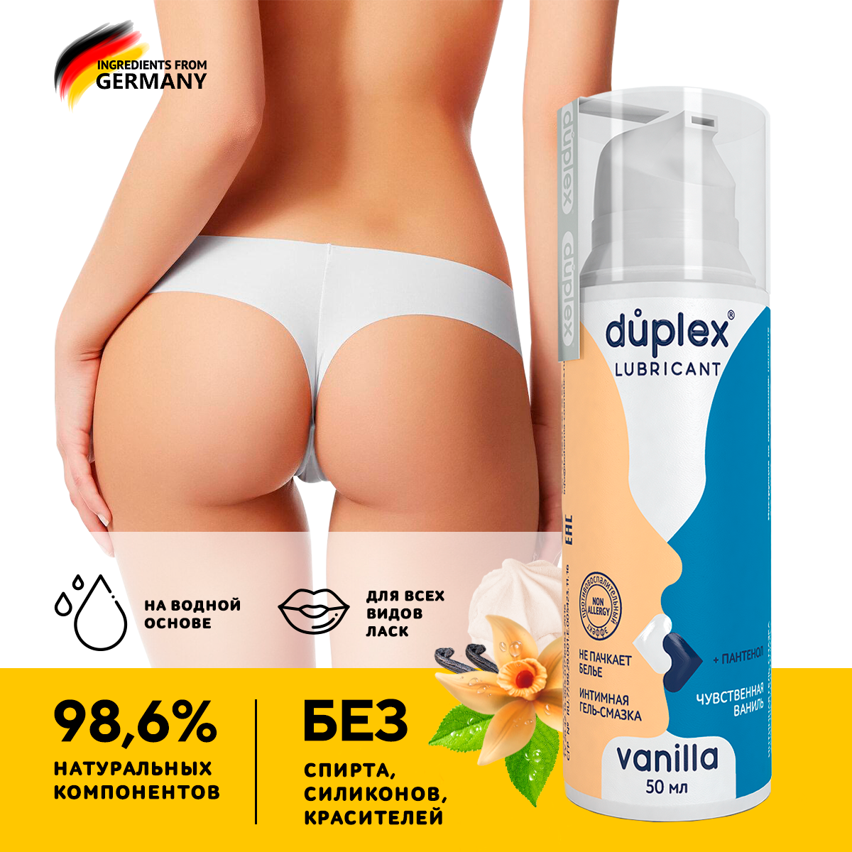 Купить Лубрикант Duplex интимный гель смазка со вкусом Ваниль на водной основе анальный съедобный 18+, с дозатором 50 мл