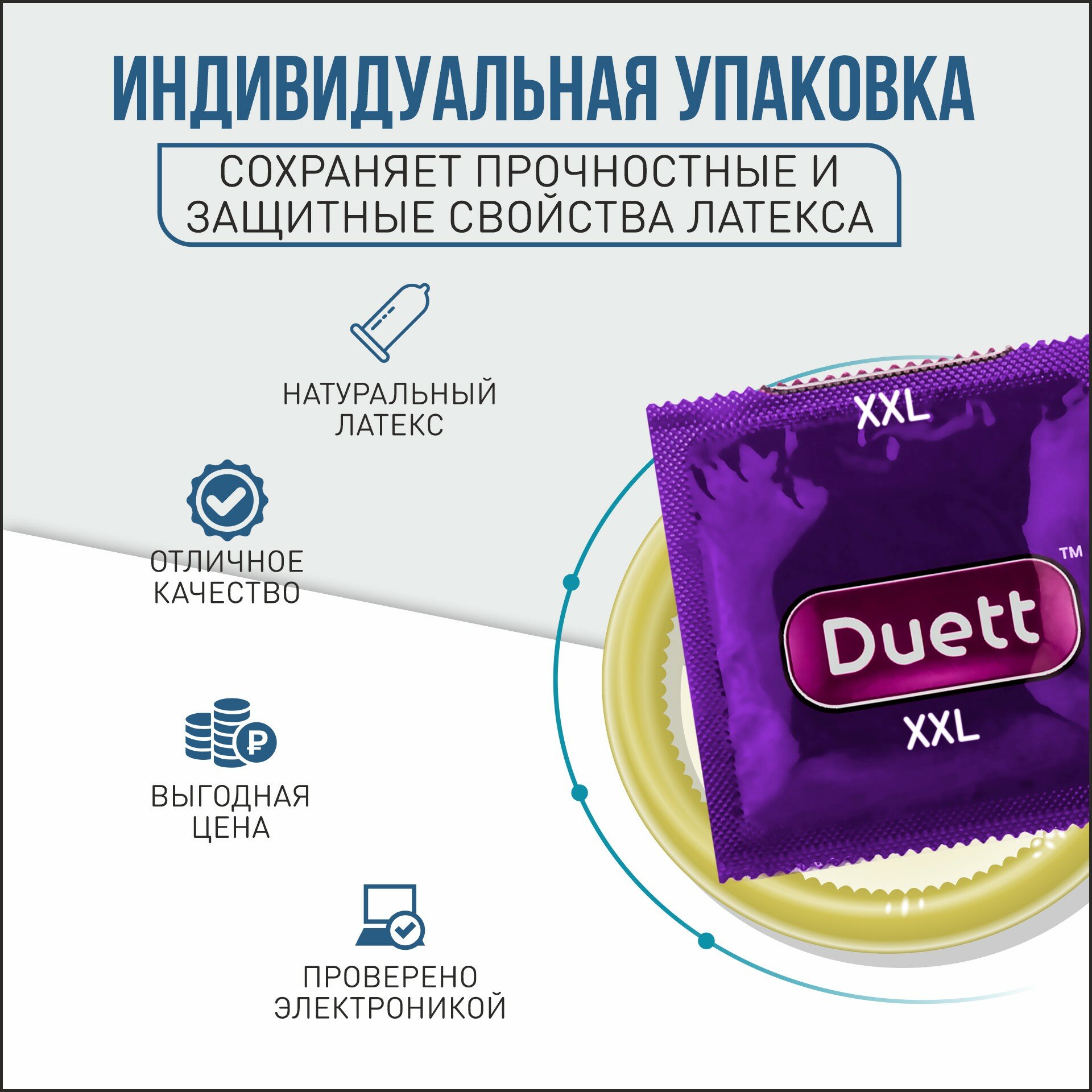 | Дополнительная информация | Презервативы Duett XXL увеличенного размера. Минимальная длина 190 мм, ширина 56+-2 мм |