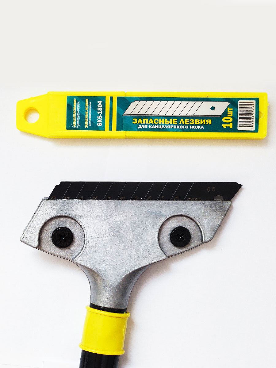 | Подробная комплектация | Строительный скребок - 1 шт; Сменные лезвия - 10 шт; Упаковка - 1 шт. |