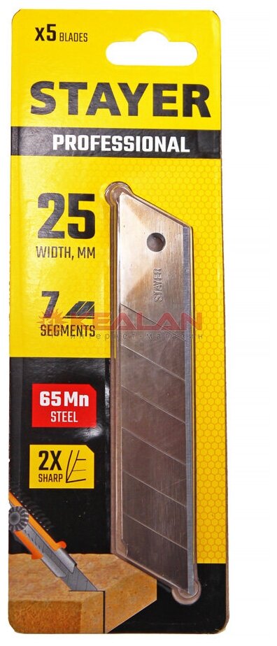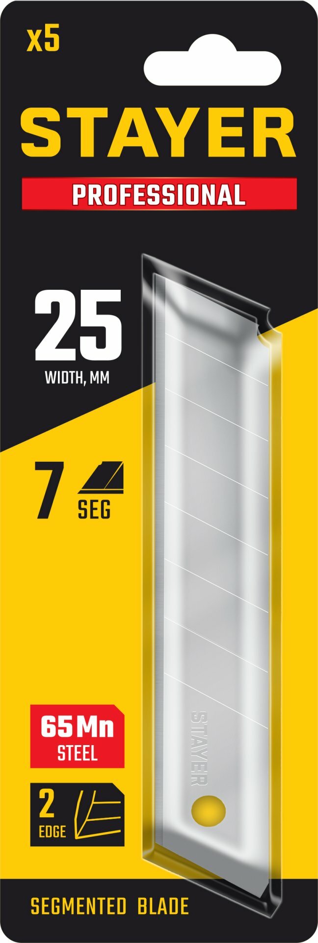 | Подробная комплектация | Сегментированные лезвия STAYER 25 мм, 5 шт. 09179-S5 |