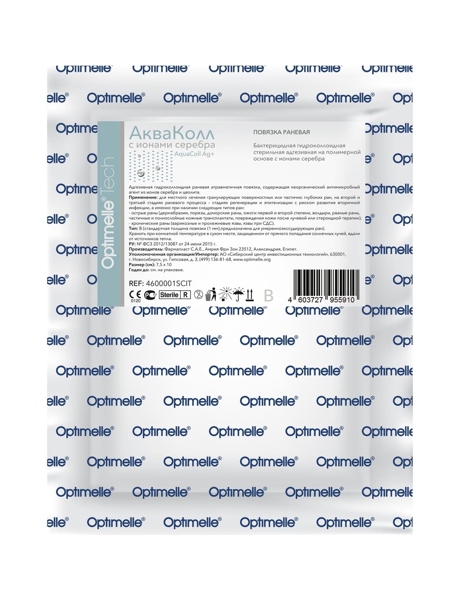 Повязка с серебром гидроколлоидная АкваКолл Аг+ (F=0,3-0,6мм) 7,5х10 см